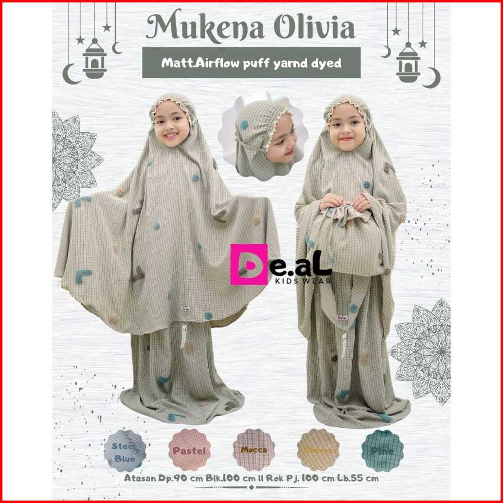 Mukena Olivia Anak Airflow Puff Yarnd Dyed Mukena Anak Motif Bahan Crinkle Mukena Anak Usia 3 Tahun Sampai 8 Tahun