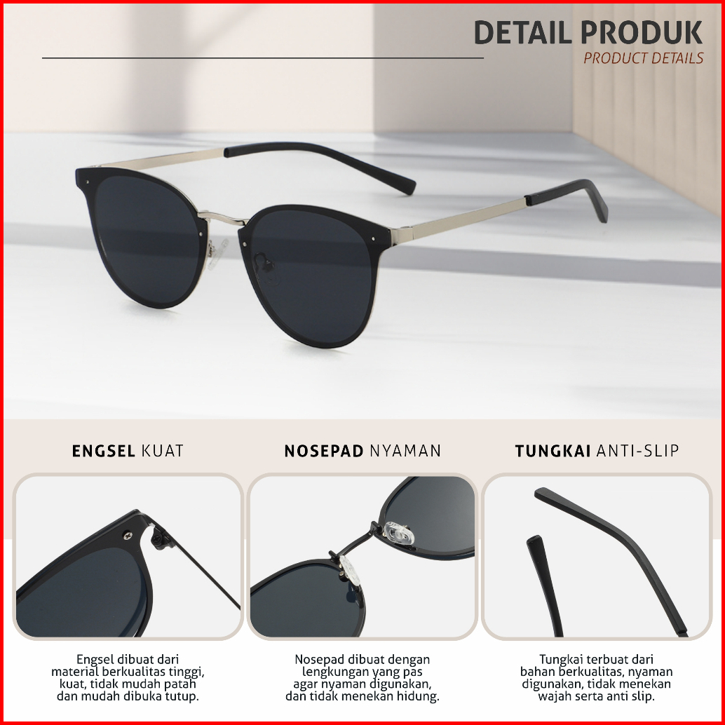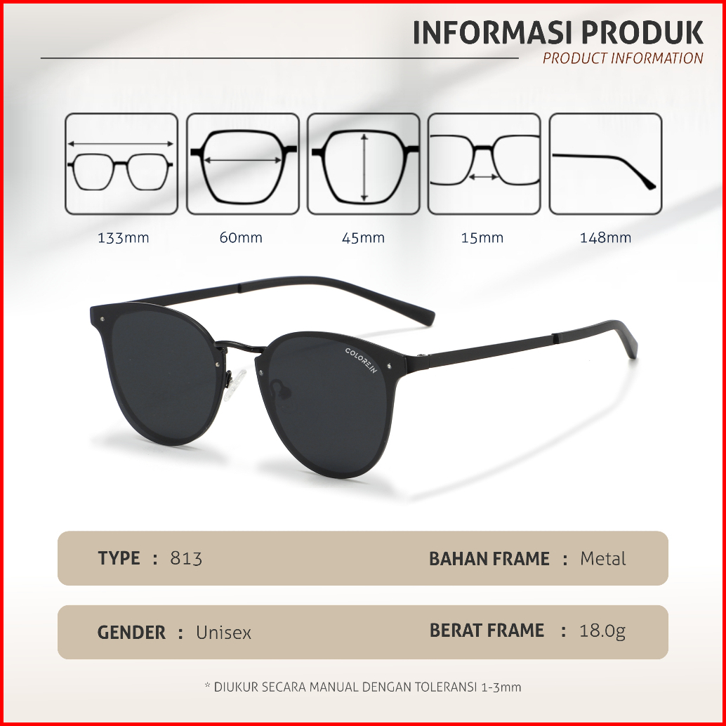 Colore.in Kacamata Hitam Sunglasses Polarized Bulat Korean Style Bahan Tr90 Pria Wanita 813-9439