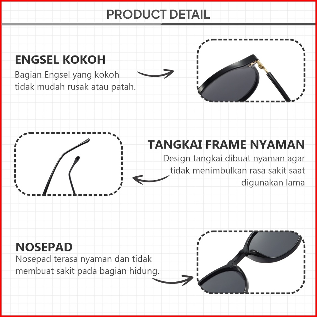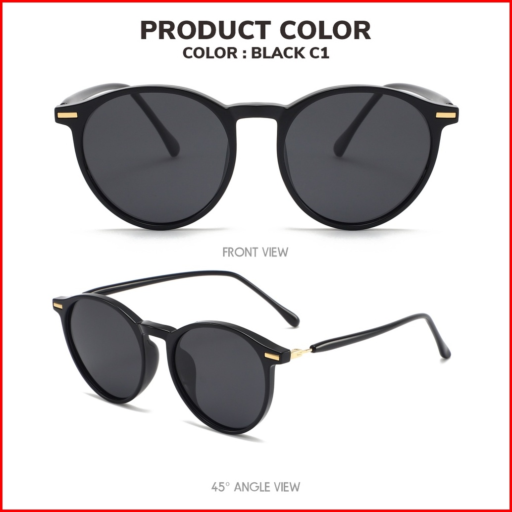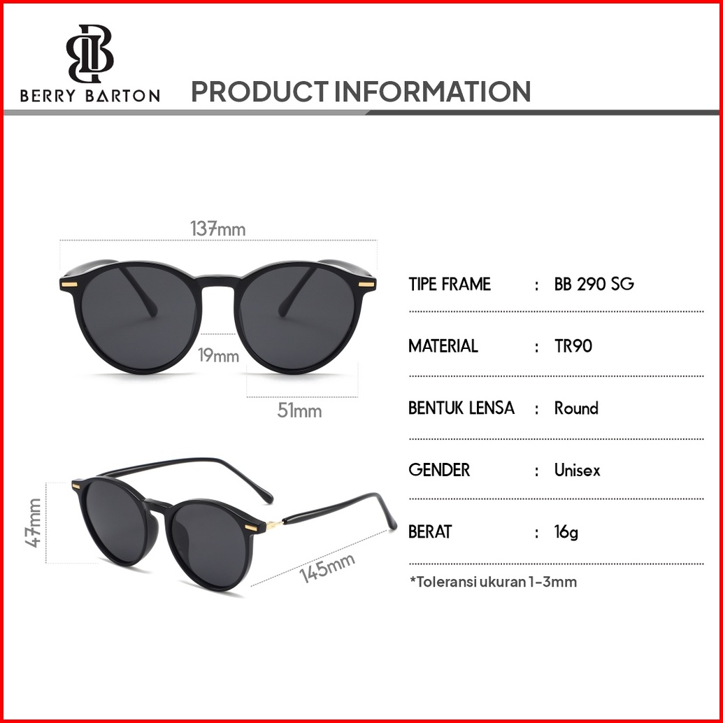 Berrybarton - Kacamata Hitam Bulat Tr90 Sunglasses Anti Silau Uv400 Pria Wanita 290 S