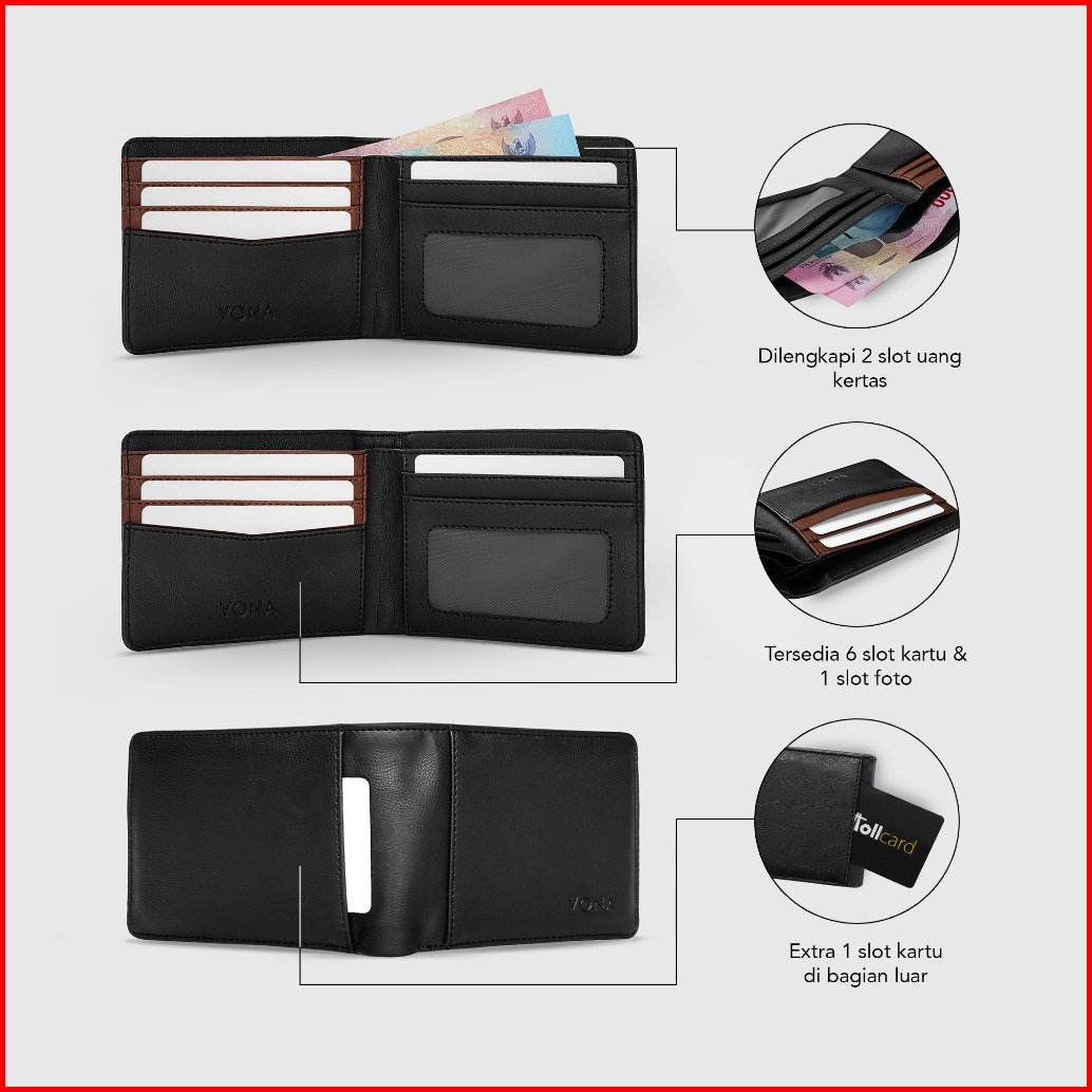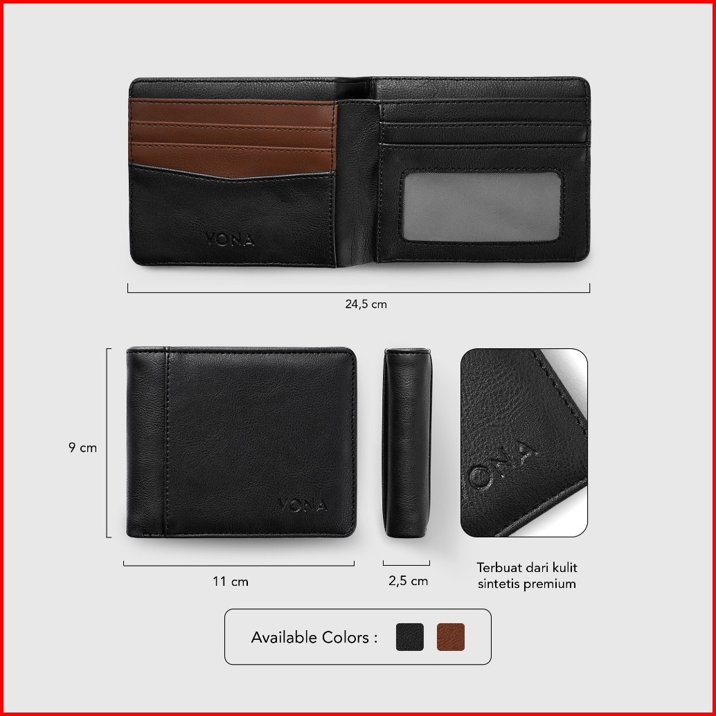 Vona Oscar Wallet - Dompet Pria Lipat 2 Pendek Kulit Pu Premium