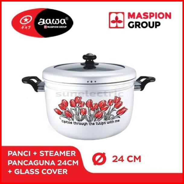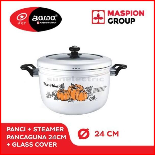 Maspion Alu Panca Guna Pancaguna Panci Kukus Sarangan Dandang Steamer Tutup Kaca 24 Cm - Silver