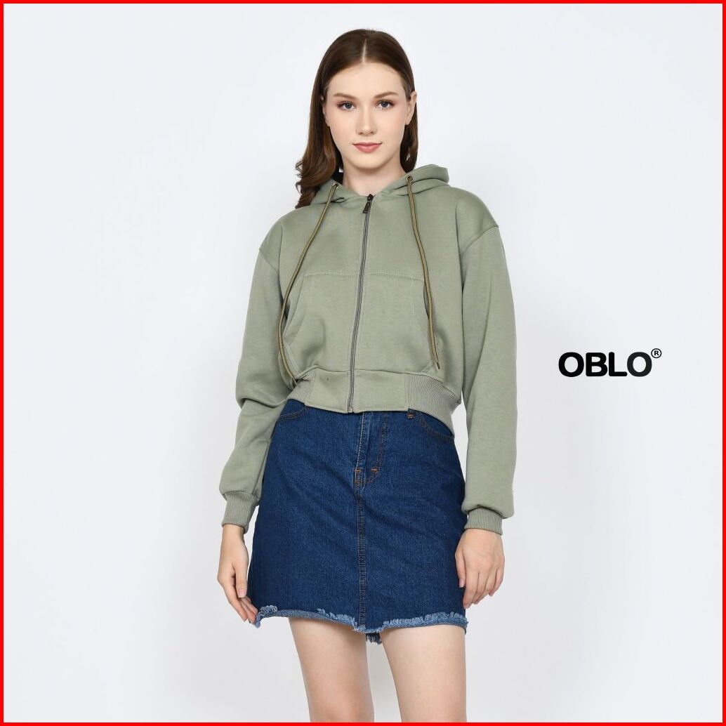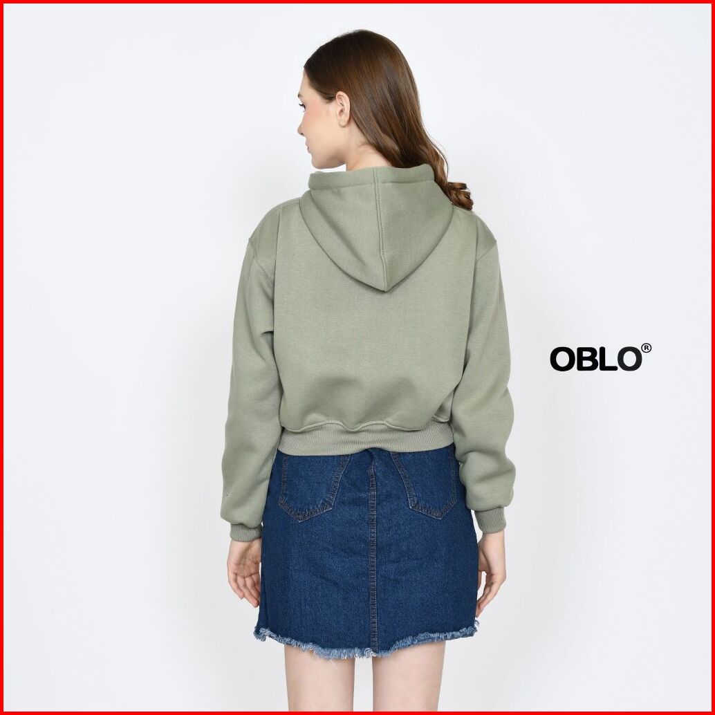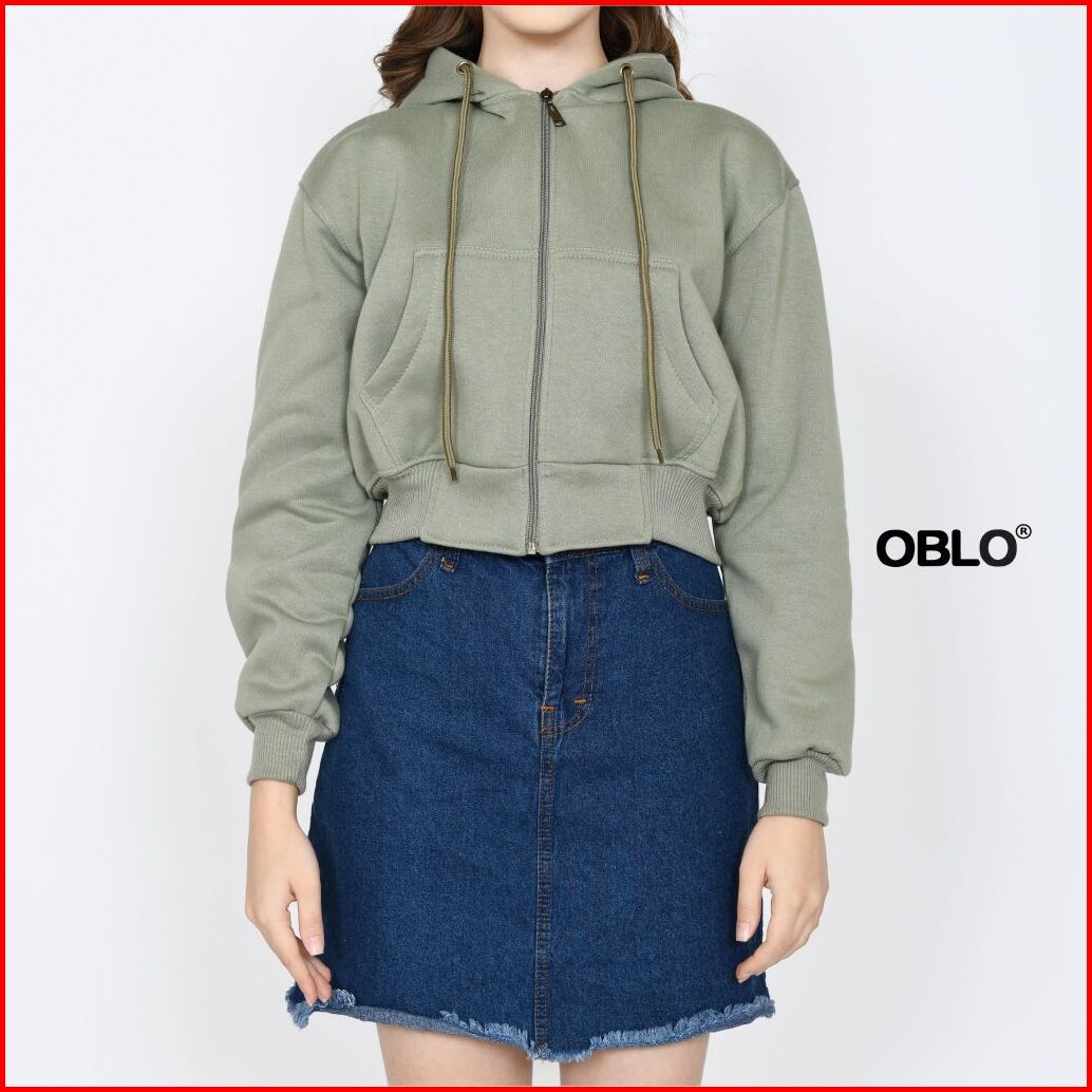 Oblo Hoodie Crop Oversize Wanita Polos Zipper