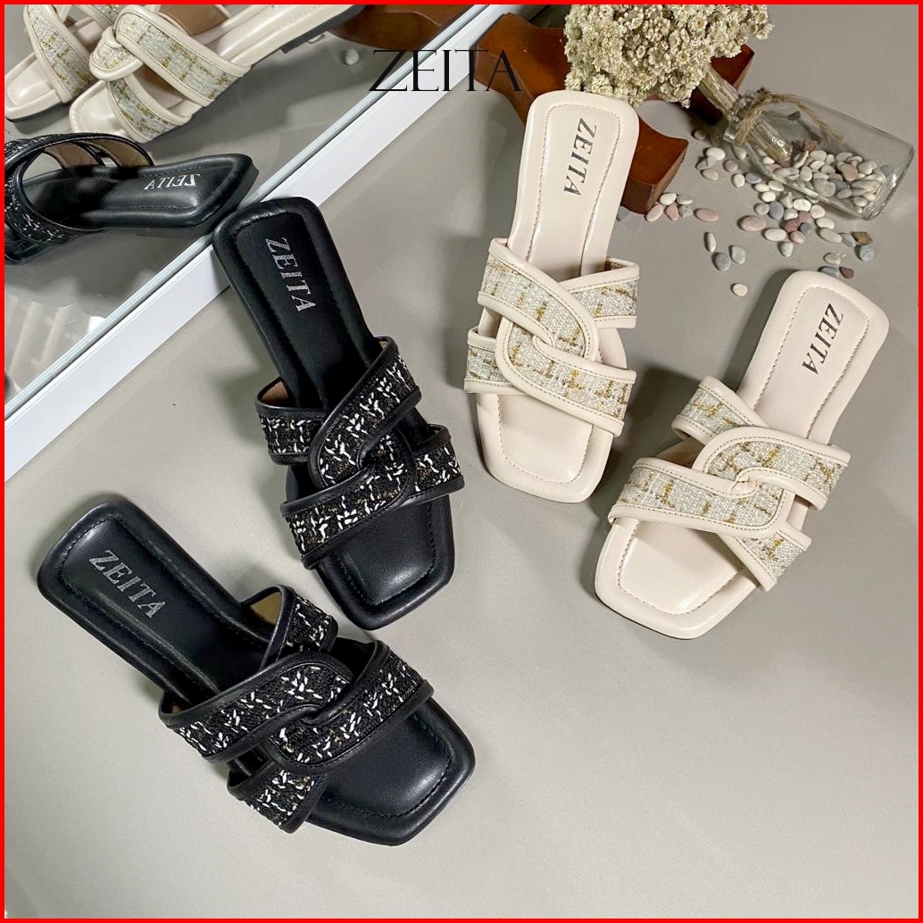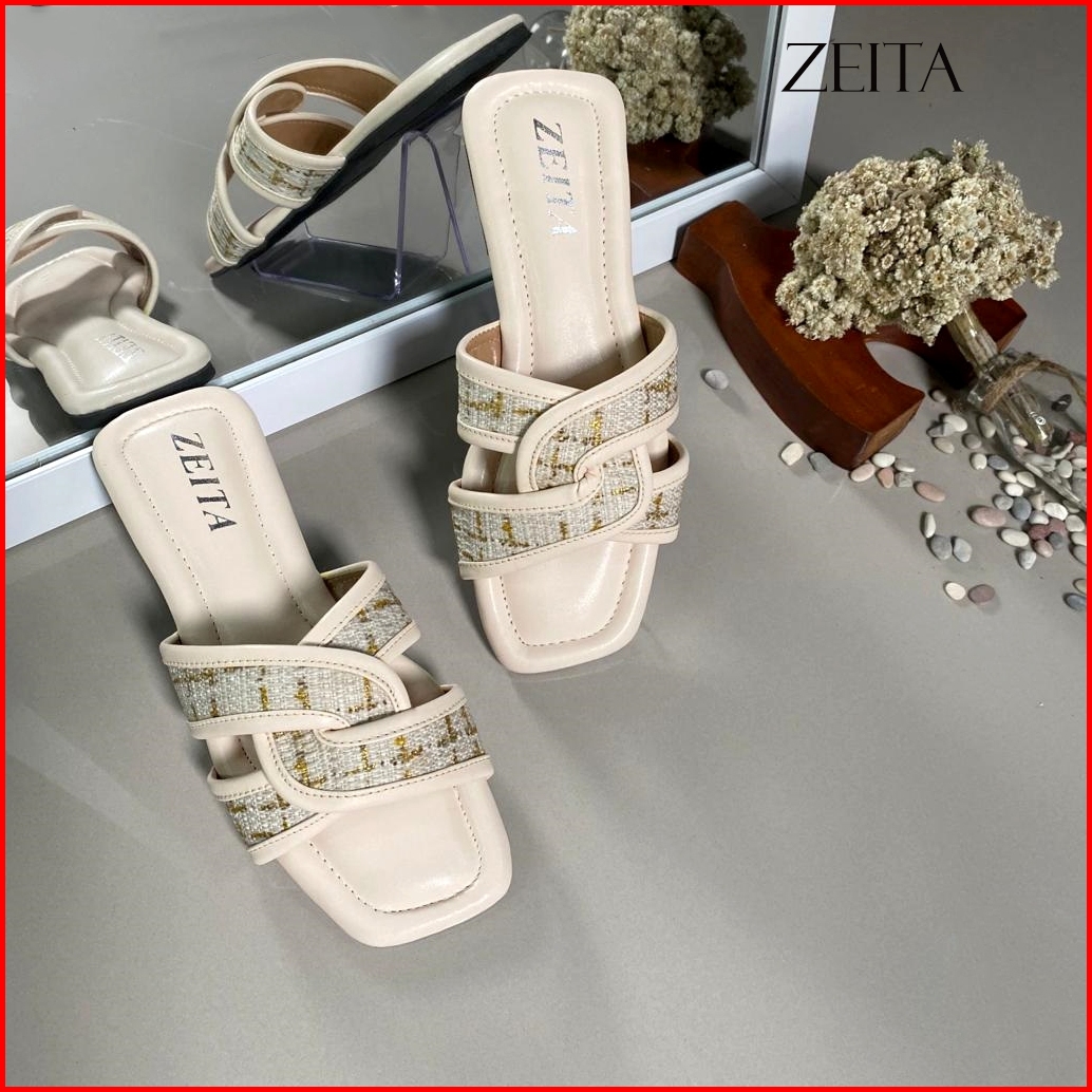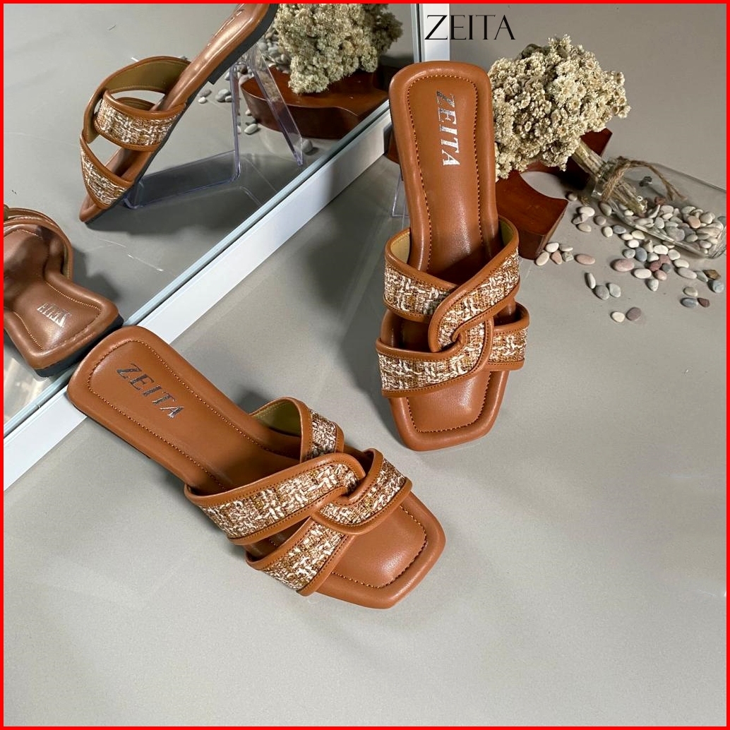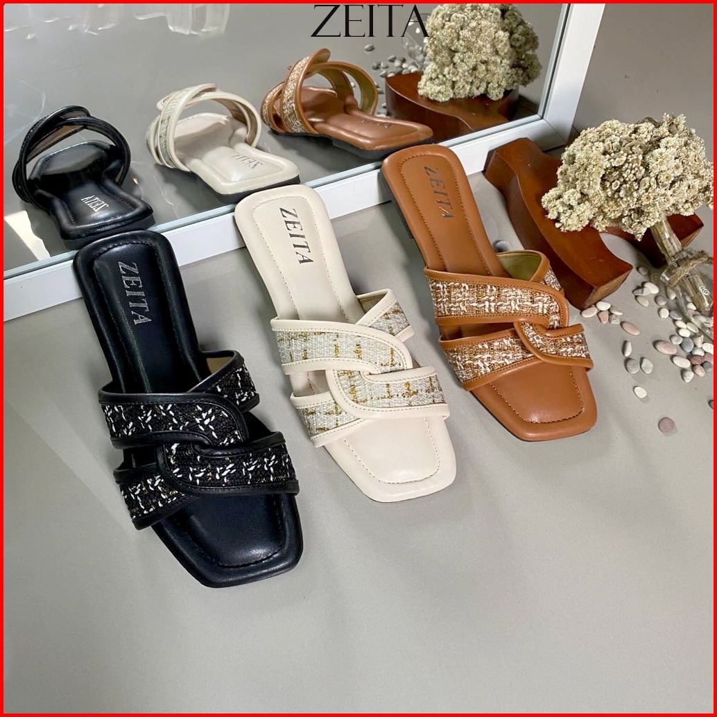 Zeita Sandal Teplek Wanita Terbaru Motif Kain Lucu Big Size 36-40 41-44 Model Trandy Kekinian