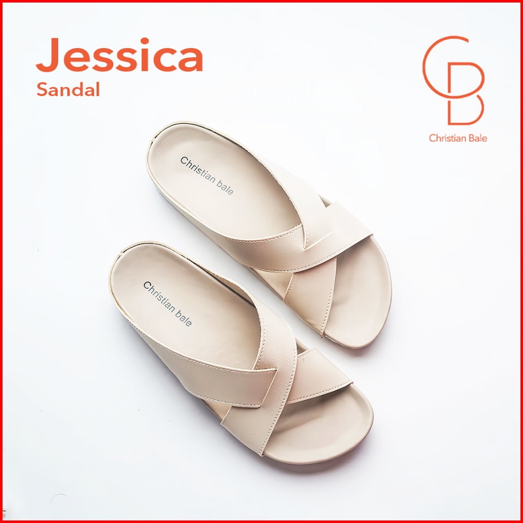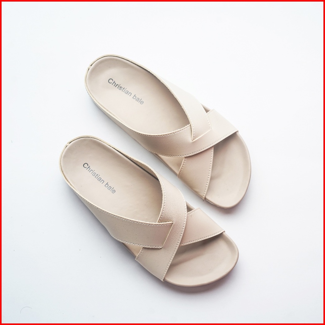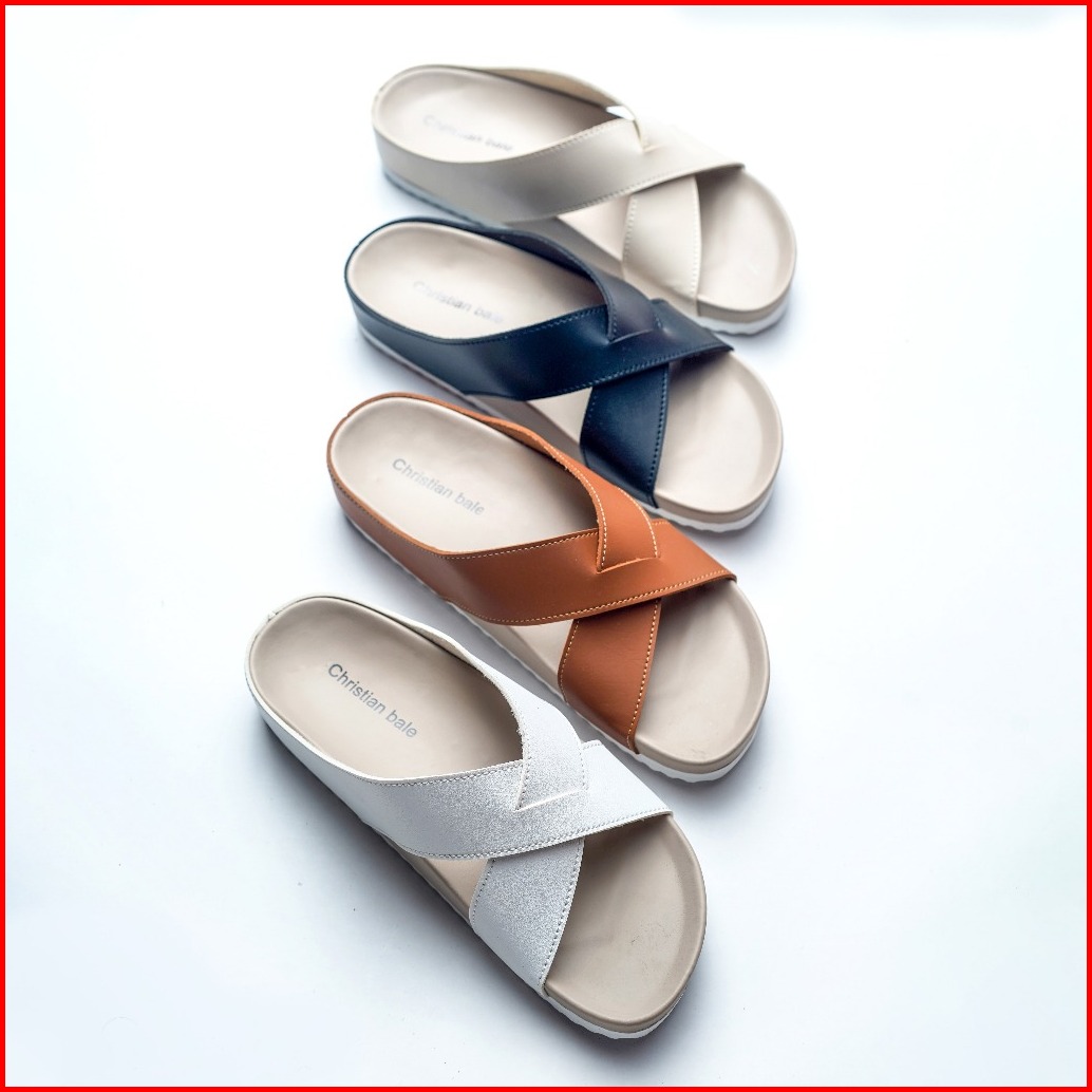 Christian Bale Jessica Sandal Flat Platform Cewek Ban Dua Silang Cantik Sendal Selop Wanita Casual Kekinian Terbaru