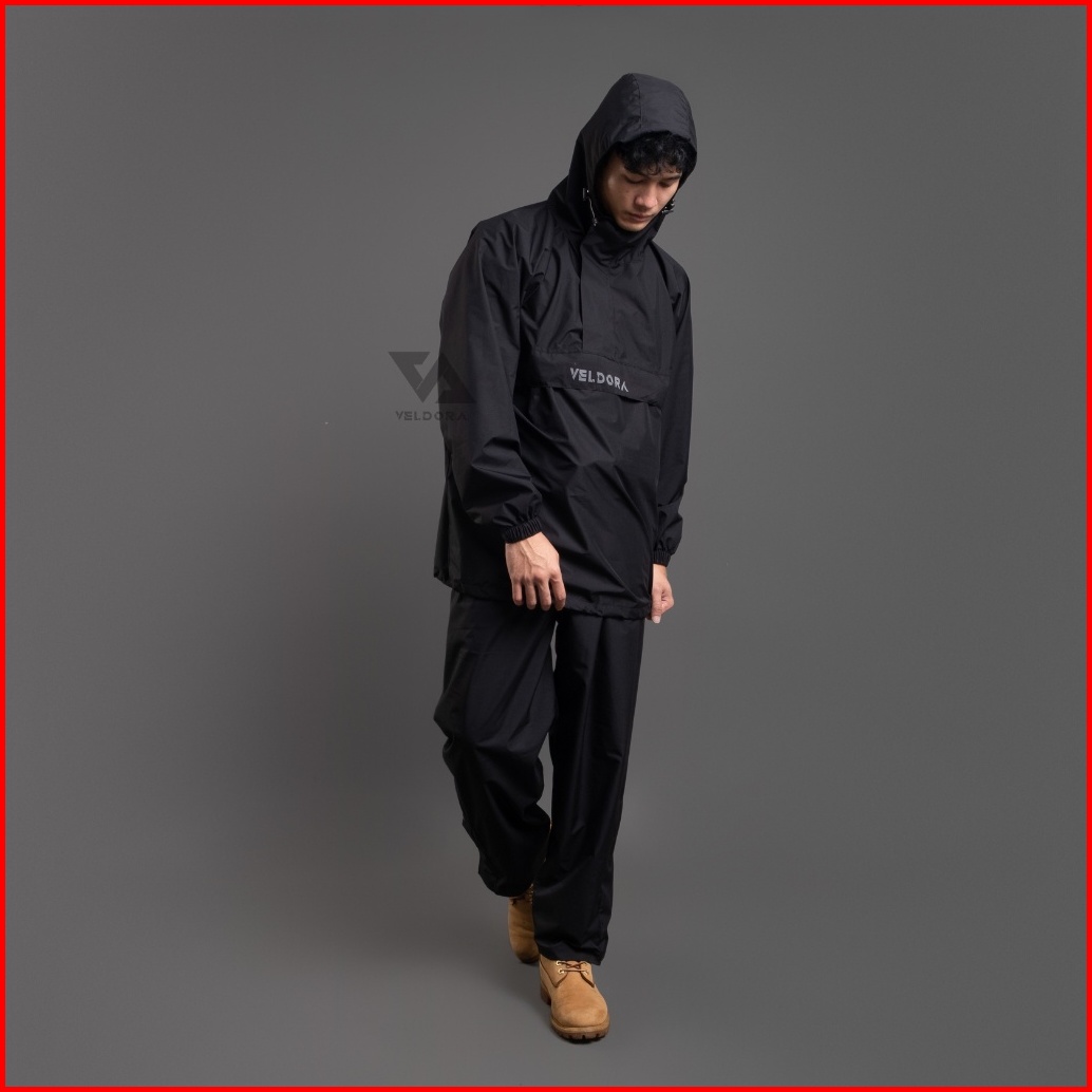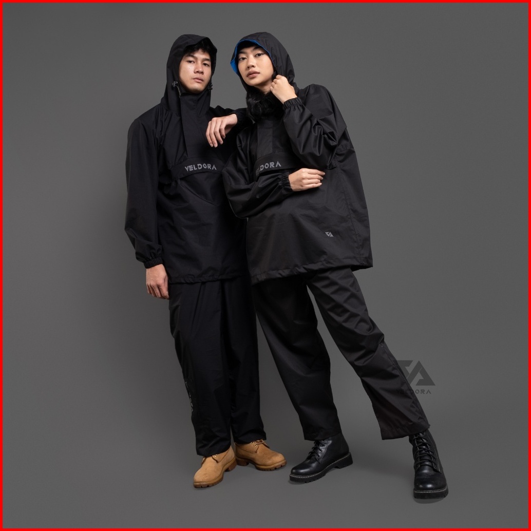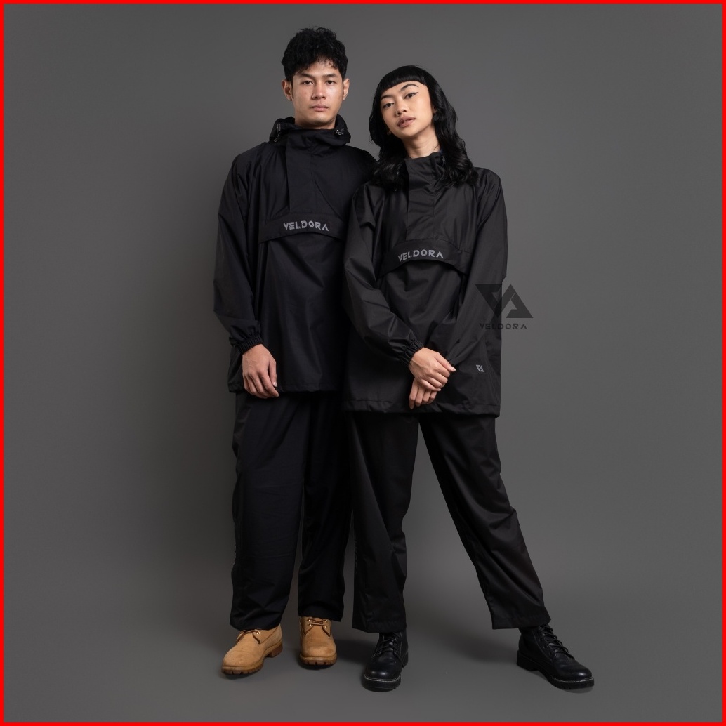 Veldora - Jas Hujan Mantel Pria Dan Wanita Dewasa Alpha Series Hitam