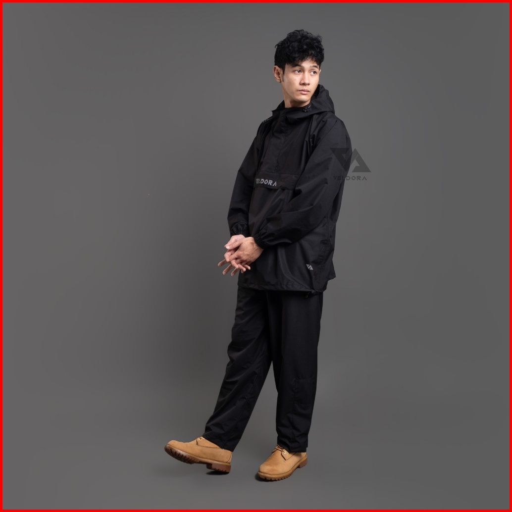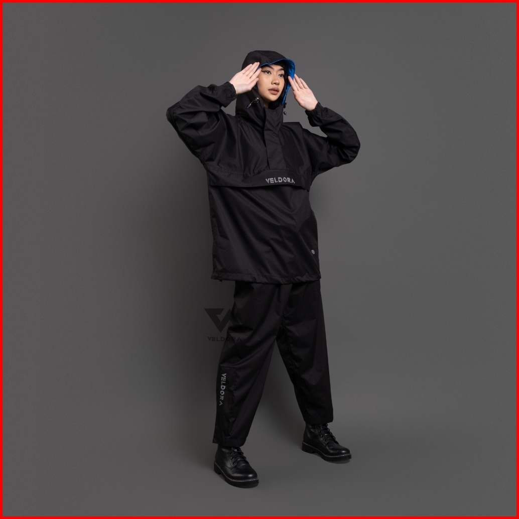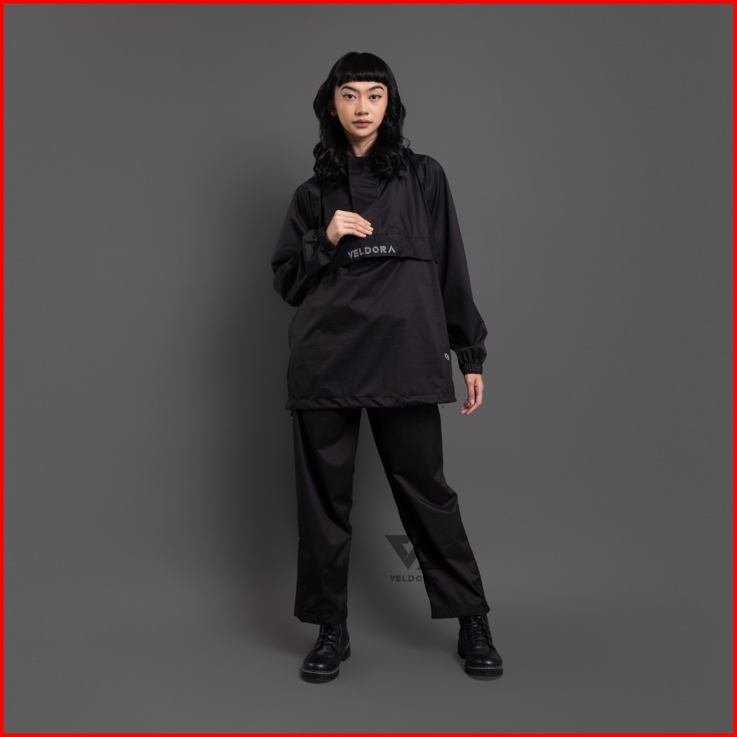 Veldora - Jas Hujan Mantel Pria Dan Wanita Dewasa Alpha Series Hitam