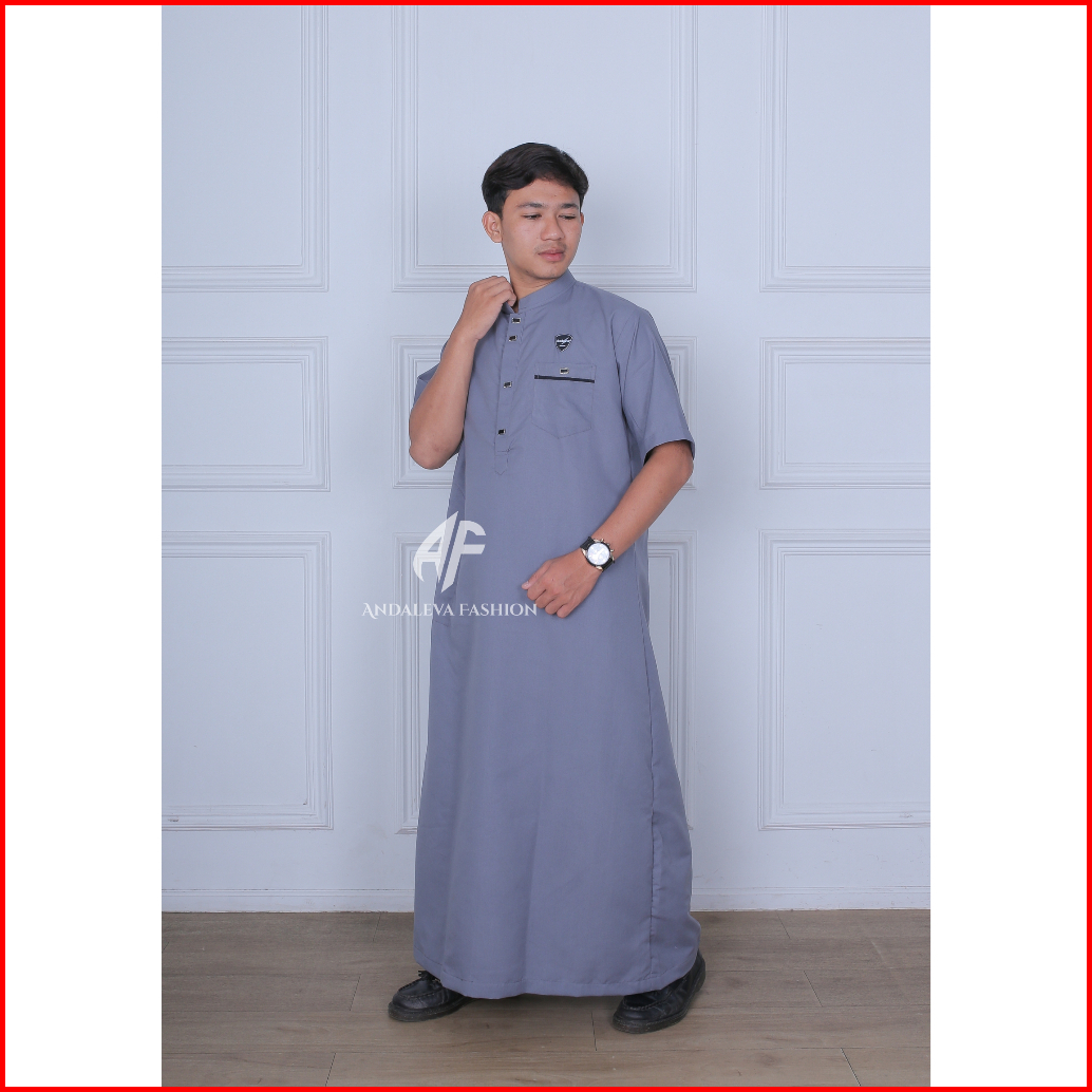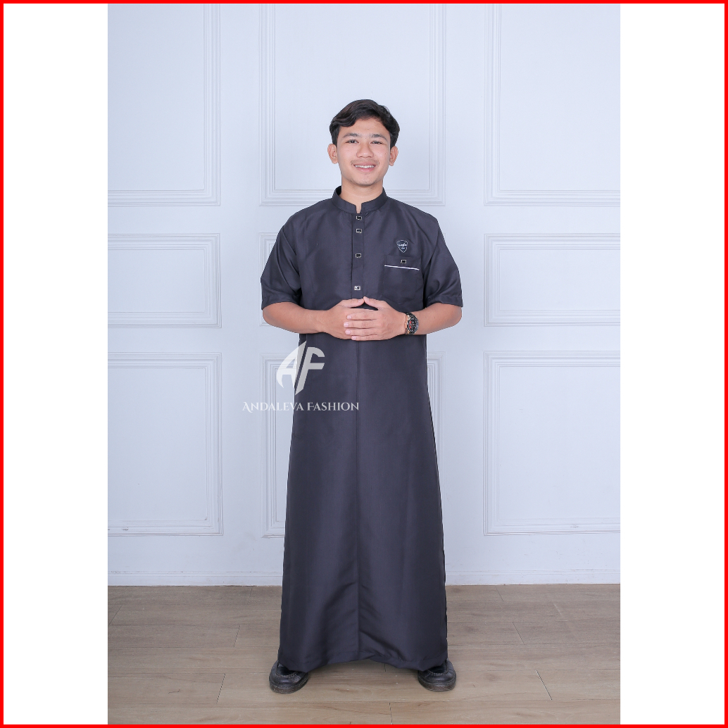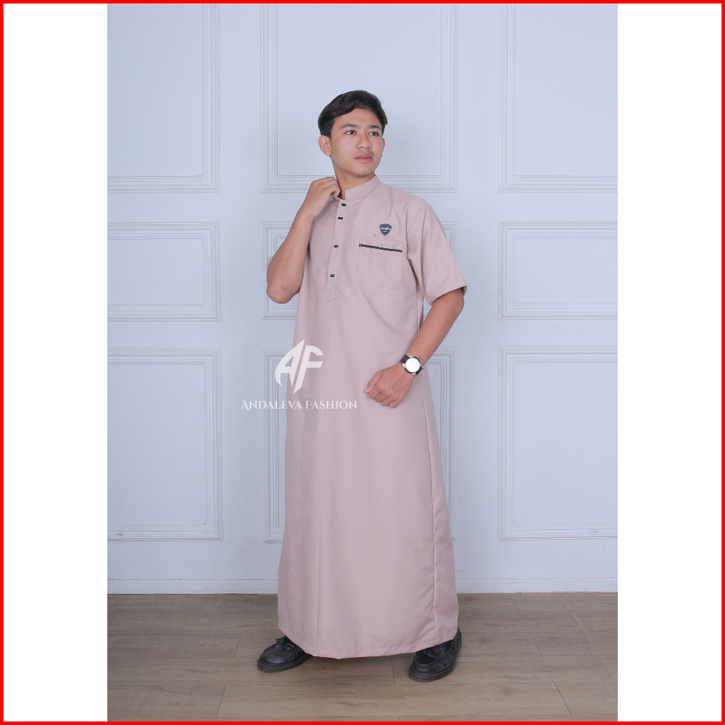Jubah Gamis Muslim Pria Lengan Pendek Model Kancing Sultan