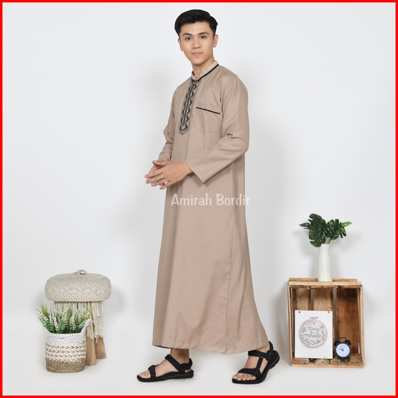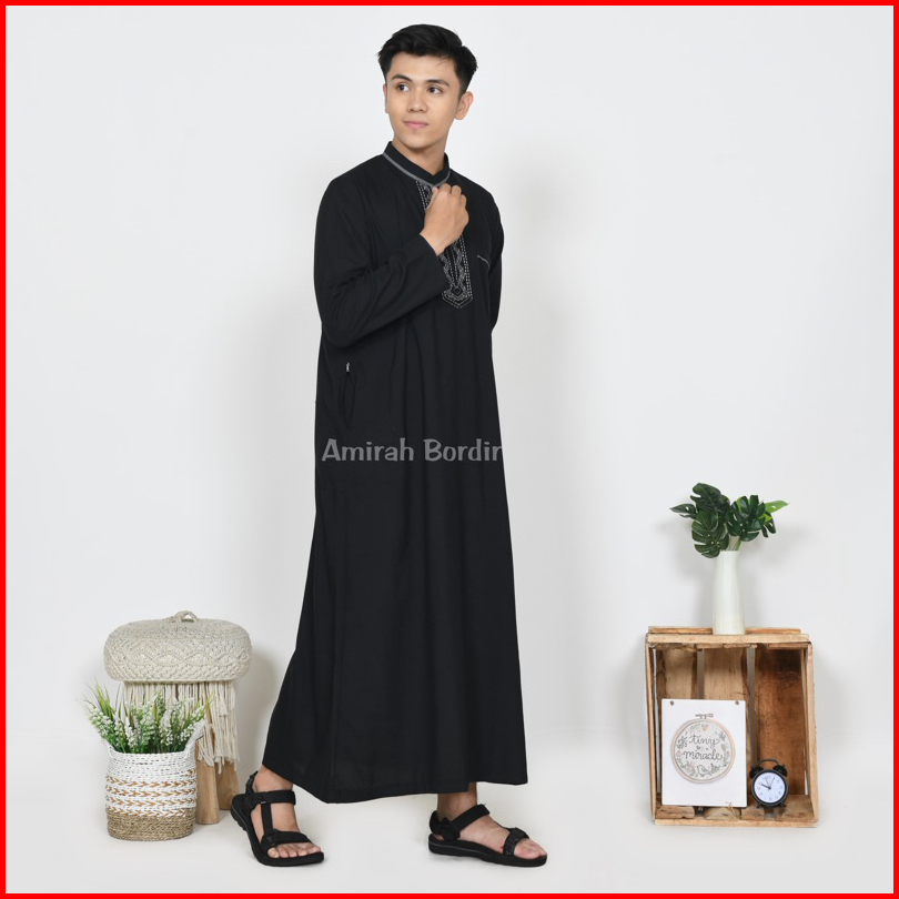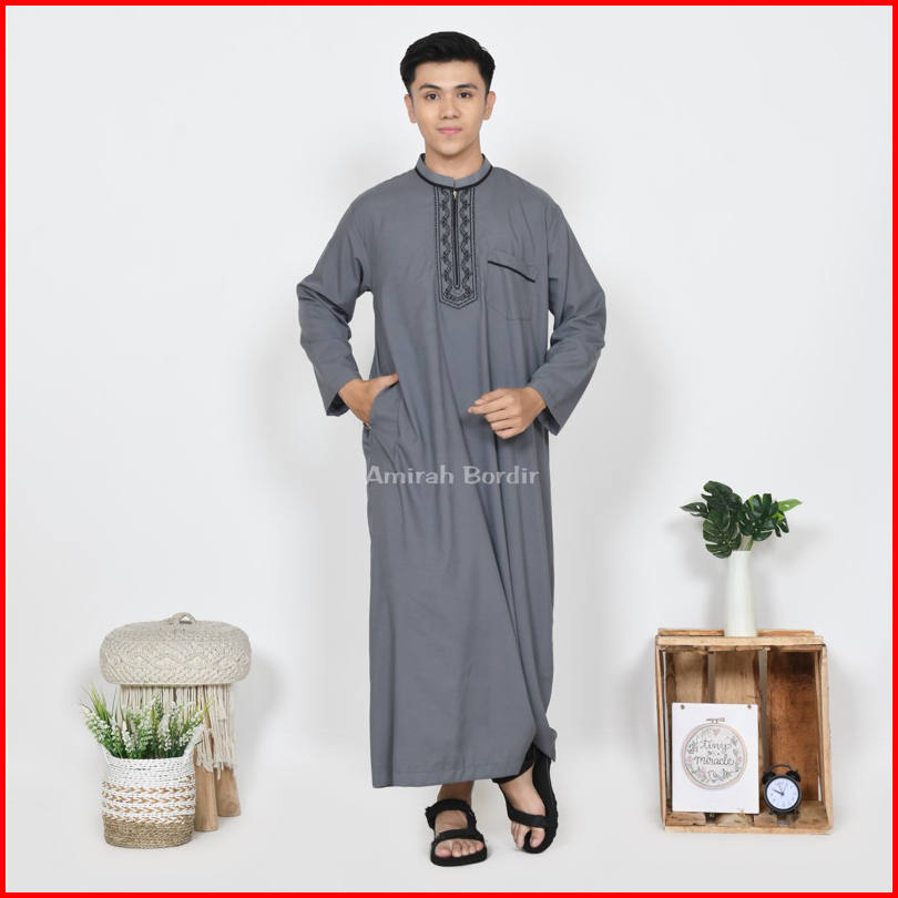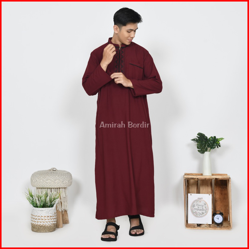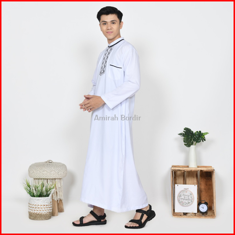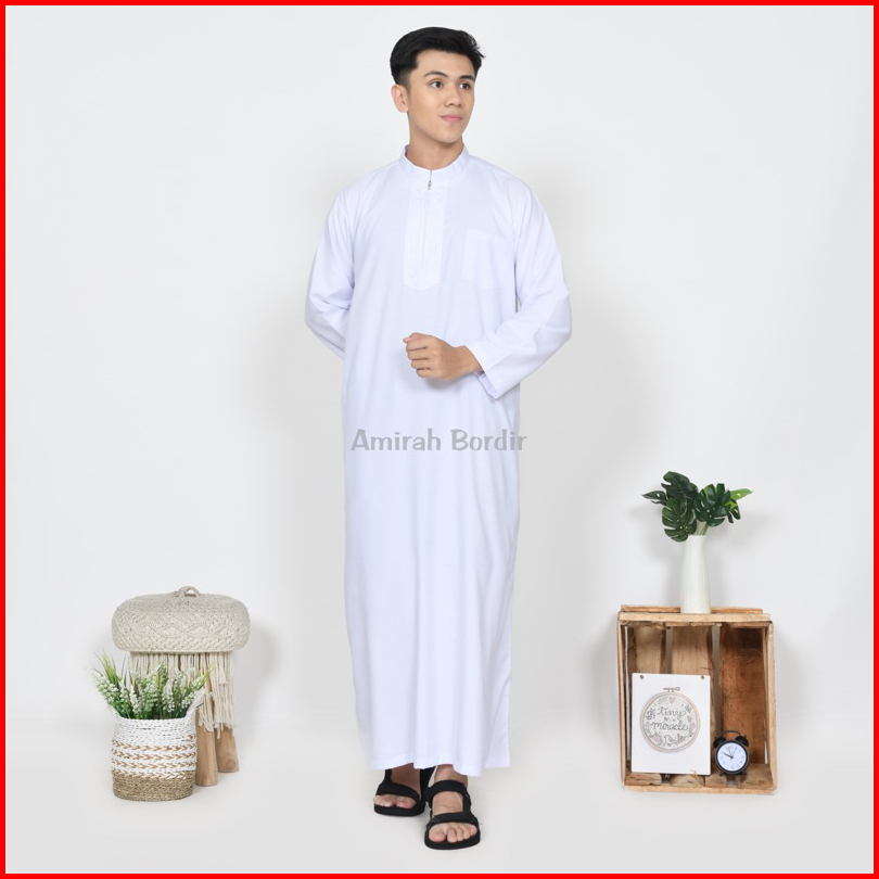Jubah Laki - Laki Dewasa Bordir Simpel Elegant Gamis Pria Dewasa Lengan Panjang