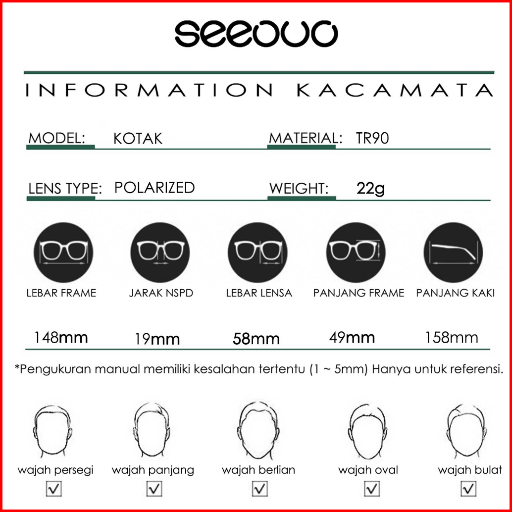 Seeouo Kacamata Hitam Sunglasses Polarized Anti Silau Uv400 Model Kotak Keren Bahan Tr Ringan Dan Kokoh Pria Wanita 3218
