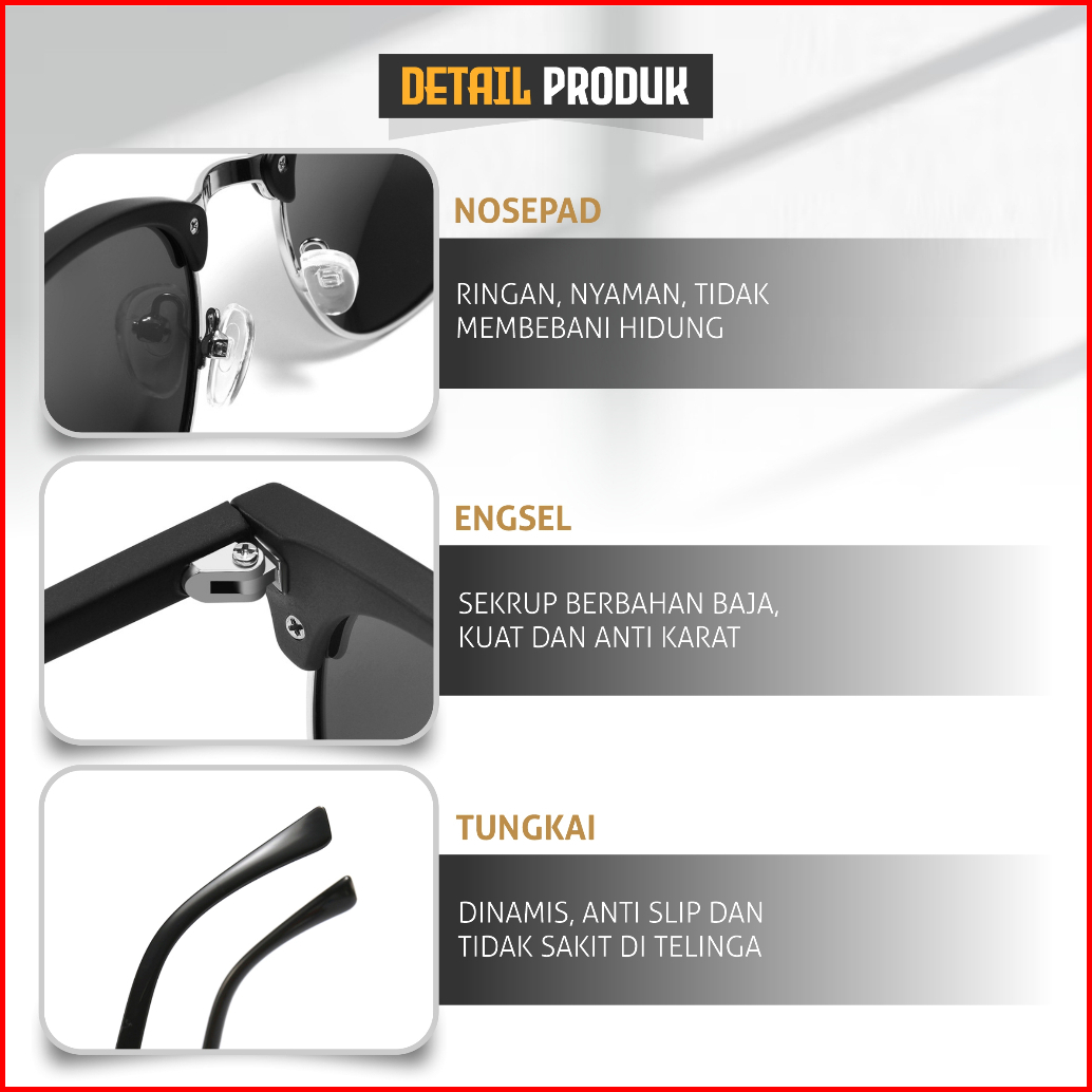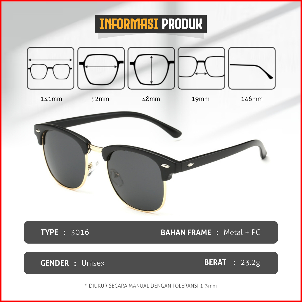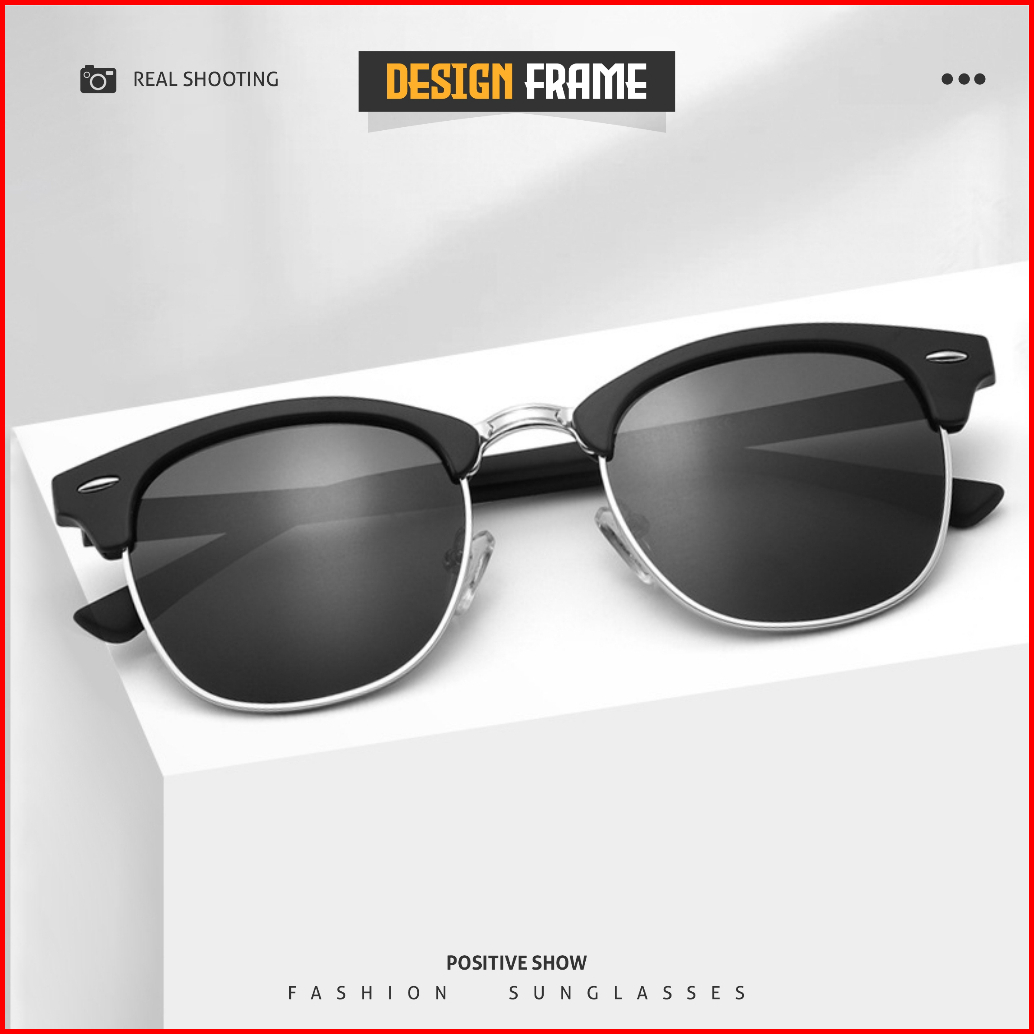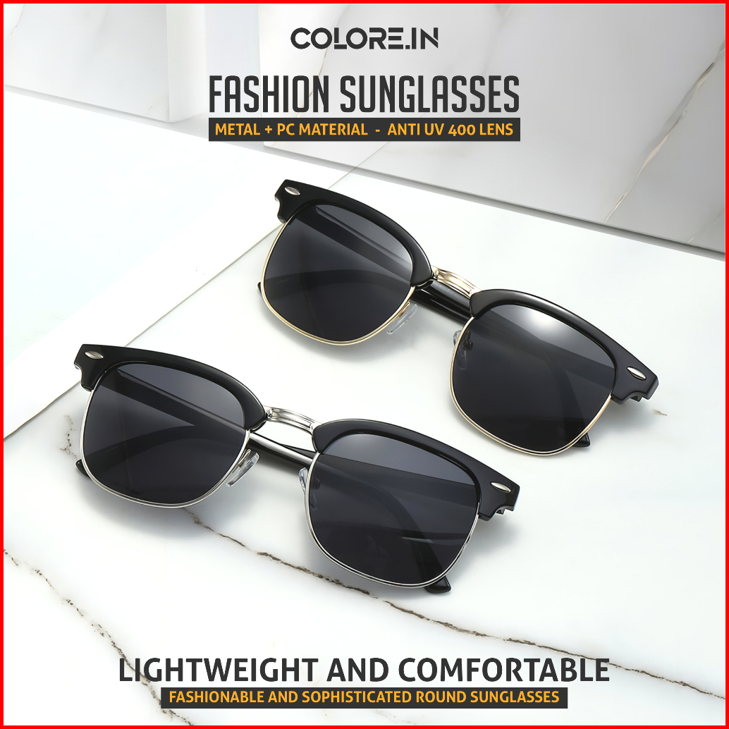Colore.in Kacamata Hitam Sunglasses Fashion Metal Tr Half Rim Bulat Slim Korean Bisa Lipat P3016