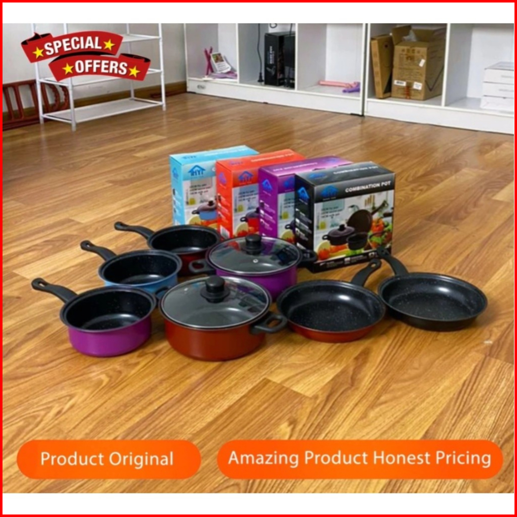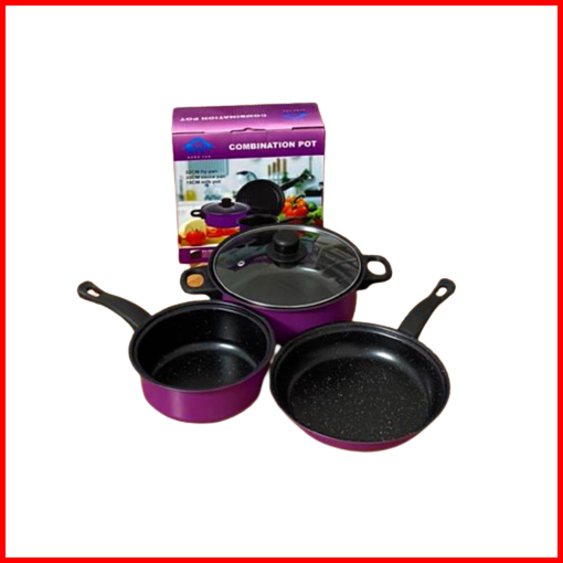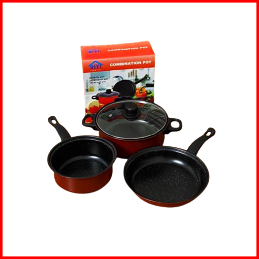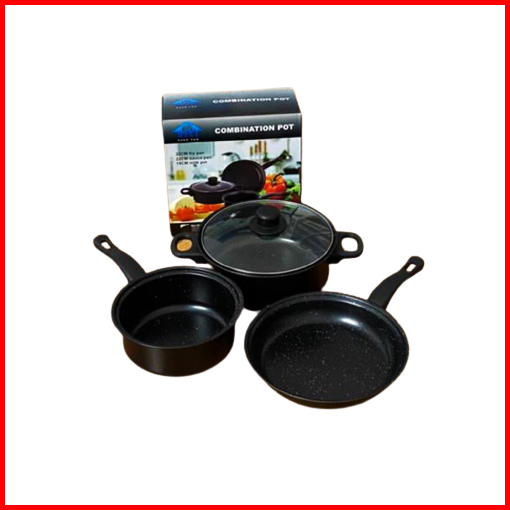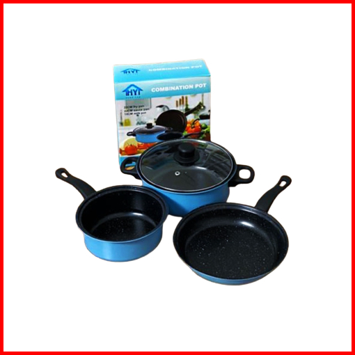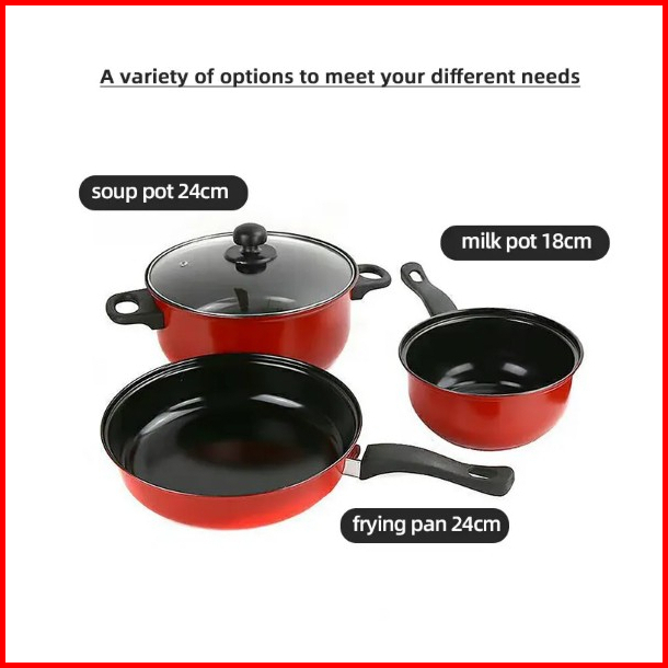Panci Set 3 In 1 Stainless Steel Cookware Set Anti Lengket Free Penutup Kaca
