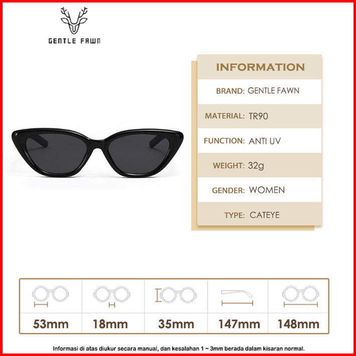 Gentle Fawn Kacamata Sunglasses Anti Uv Silau Fashion Wanita Korean Style Bentuk Cat Eye Kekinian Bahan Tr90 19311 23031