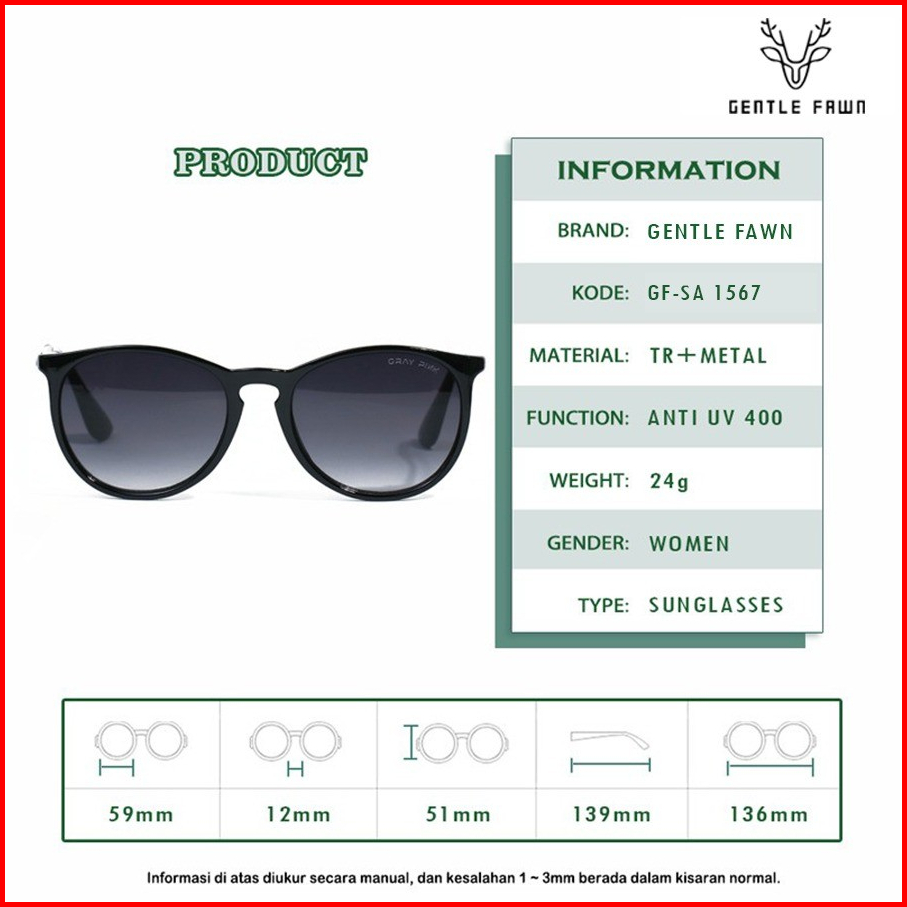 Gentle Fawn Kacamata Hitam Sunglasses Anti Uv 400 Bahan Tr90 Metal Design Simple Fashion Pria Wanita Style 1567