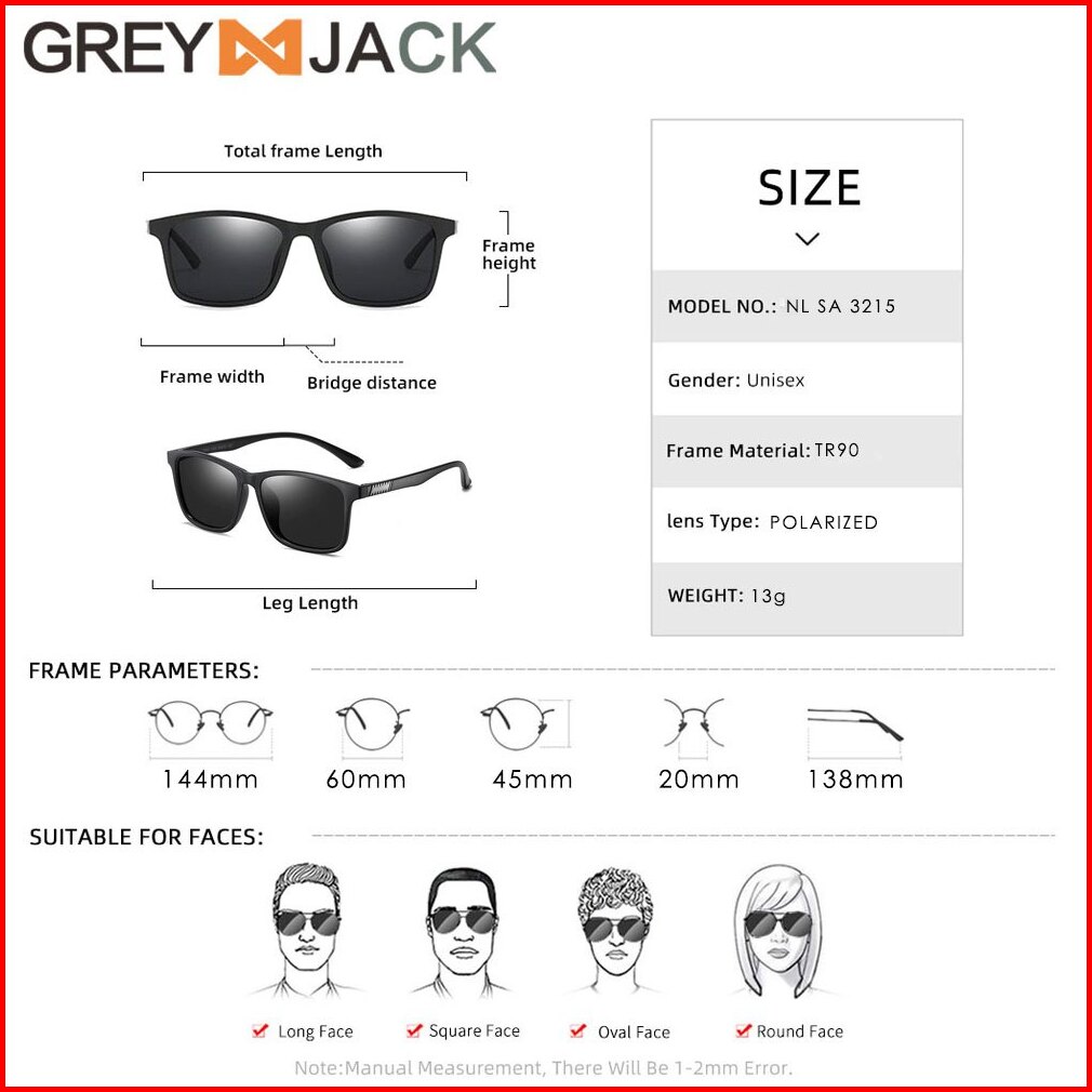 Grey Jack Kacamata Hitam Sunglasses Polarized Anti Silau Uv400 Bahan Tr90 Model Kotak Style Pria Wanita Ringan Fashionab