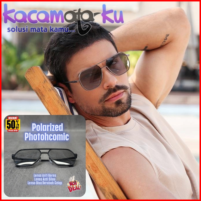 Kacamata Sunglasses Pria Photocromic Polarized Fashion Gaya Pria Wanita Lensa Siang Malam Outdoor In