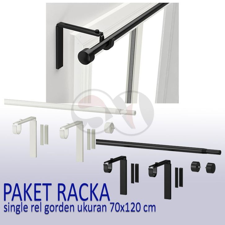 Paket RACKA SINGLE REL / kombinasi batang gorden panjang 70 - 120 cm