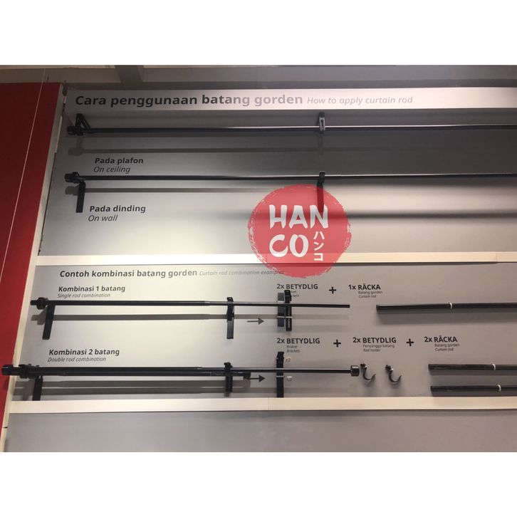 HANCO RACKA Kombinasi batang gorden/ batang tirai, hitam ukuran 120-210 cm IKEA RA1205