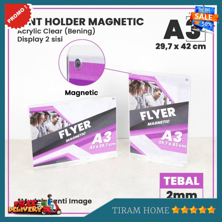 Magnetic Tent Holder I Tempat Brosur I Tent Card Akrilik Display A3