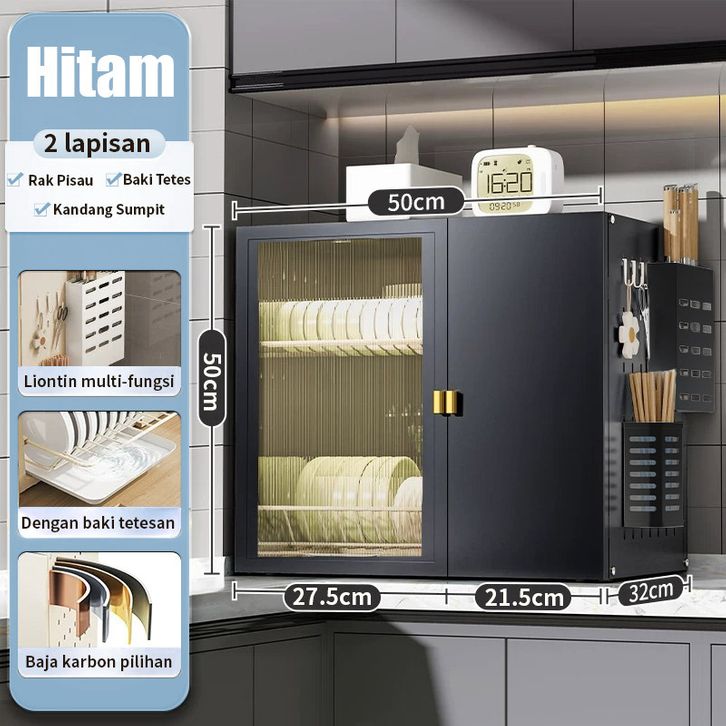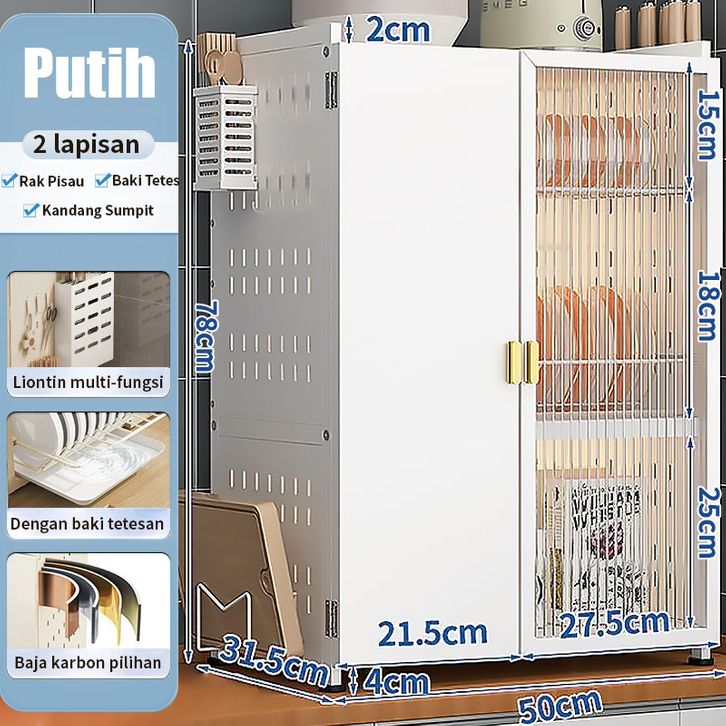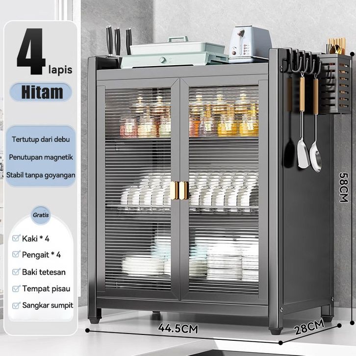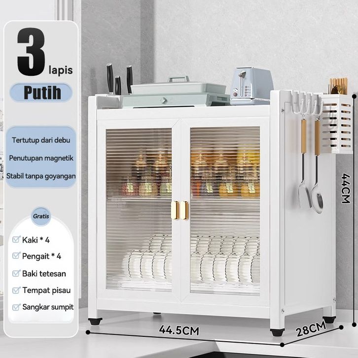 Rak Rak Piring Dapur Rak Lemari Multifungsi dengan Pintu Kabinet Sepenuhnya Tertutup Anti Serangga