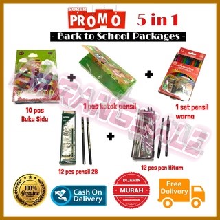 Alat Tulis Sekolah Set LENGKAP Buku Kotak Pensil Warna Pen murah PROMO 5 in 1 PAKET