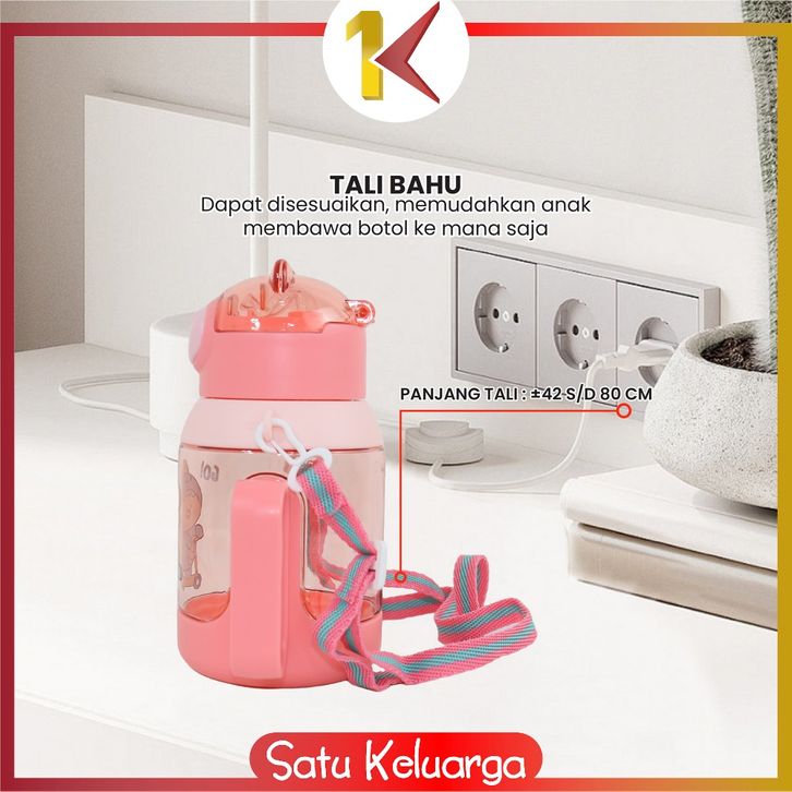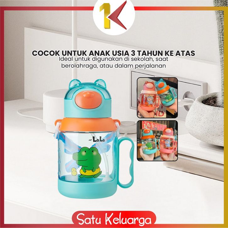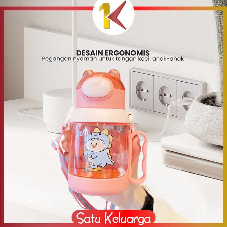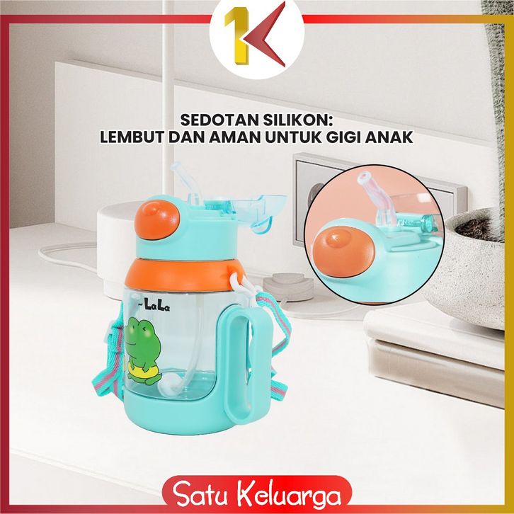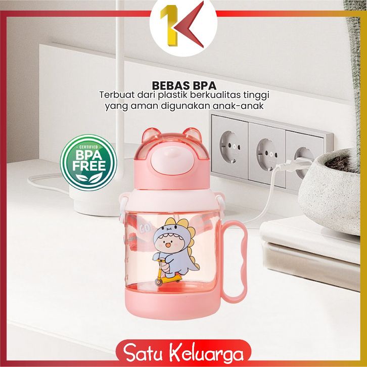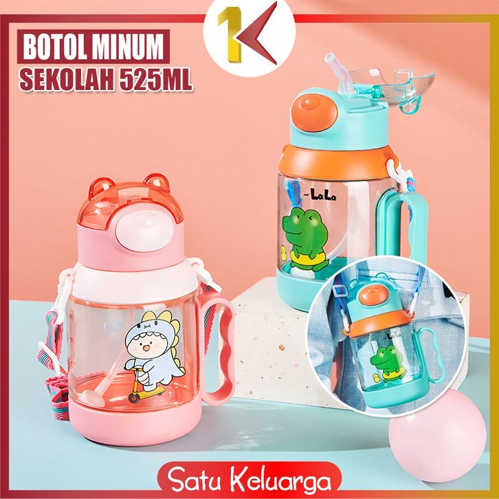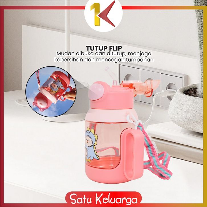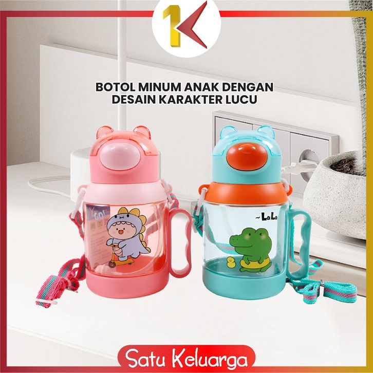 SK-C1144 Botol Minum Anak Karakter Buaya 525ML Tutup Flip Anti Tumpah dengan Sedotan Lembut Tali Praktis Bebas BPA