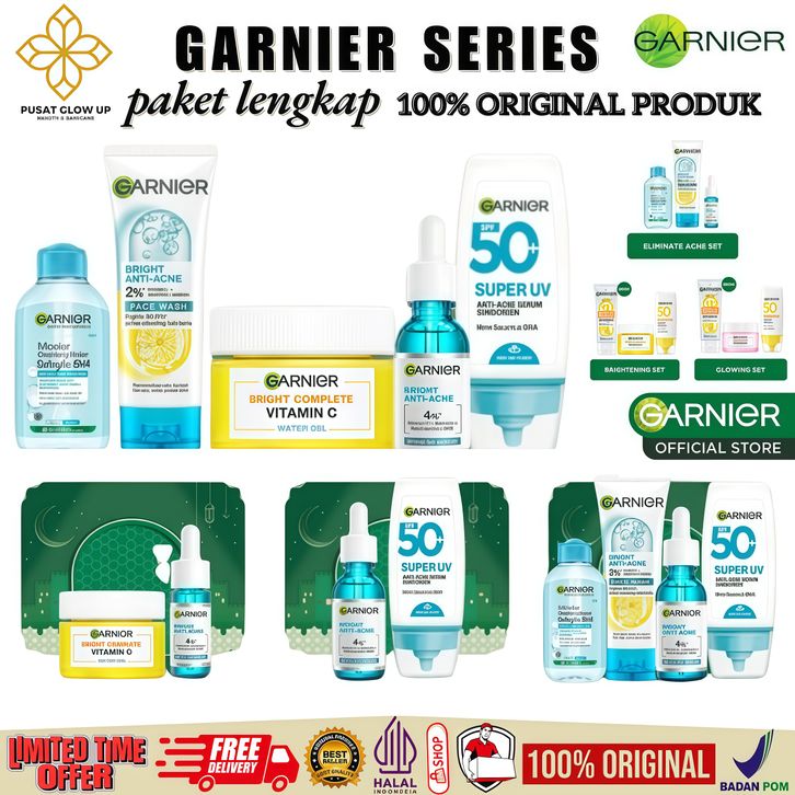 GARNIER Paket Skincare Set Anti Jerawat Anti Acne Set 2pc 3pc 5pc (Untuk Kulit Jerawat, Noda Hitam & Bekas Jerawat) Bpom