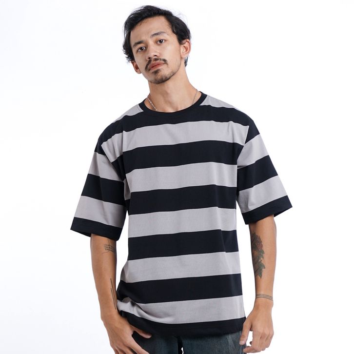 Kaos Oversize Pria Belang Lengan Pendek MATSUDA Stripe Maebashi