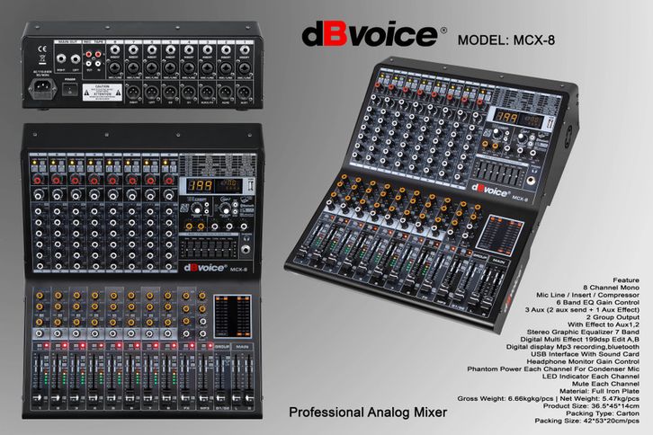 Mixer Audio Professional dB Voice MCX 8 Original 8 Channel Mixer Analog 6Tone 199dsp Effect