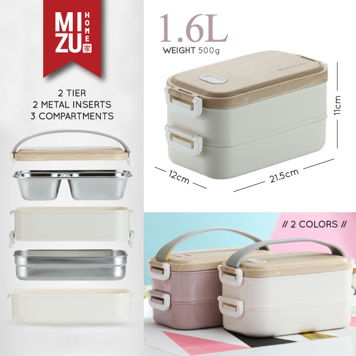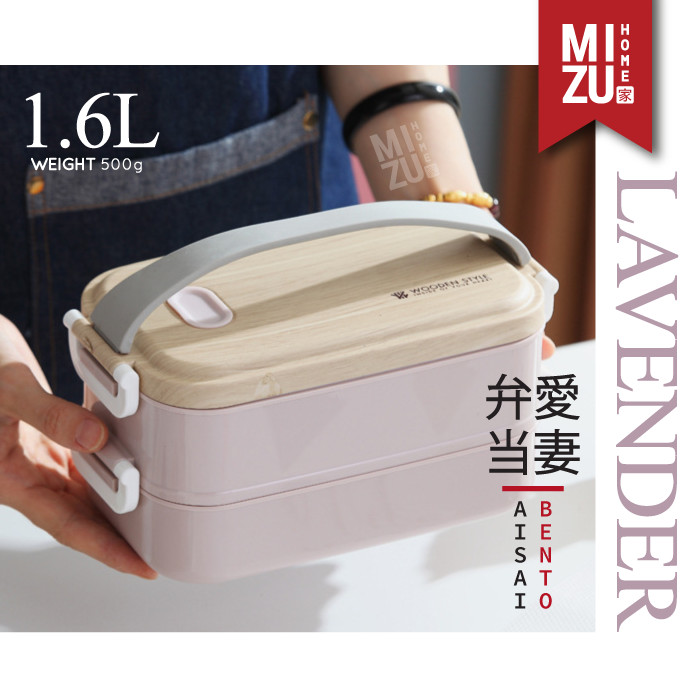AISAI BENTO 1.6L LUNCH BOX KOTAK MAKAN BEKAL RANTANG SUSUN STAINLESS - LAVENDER UNGU