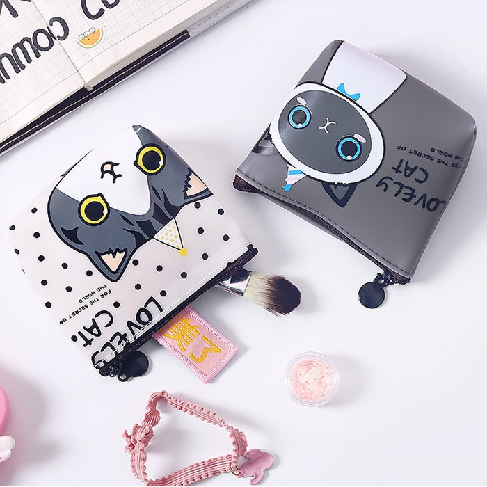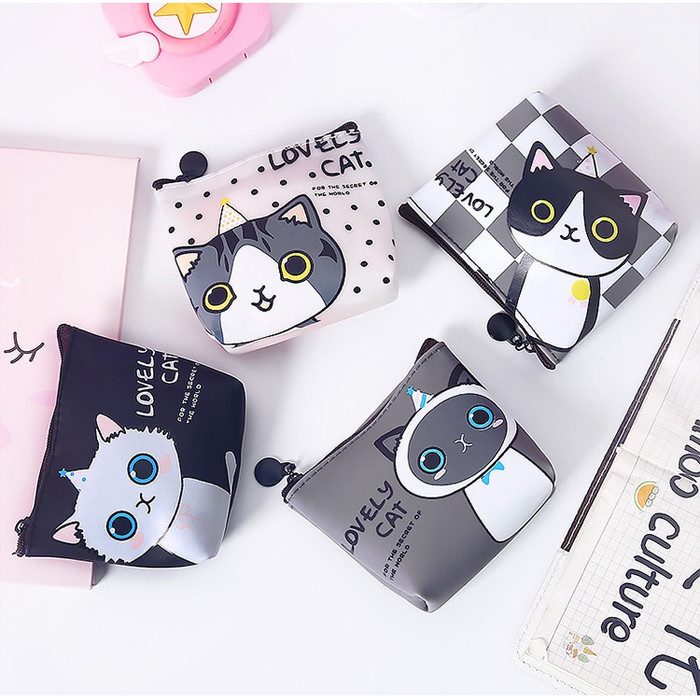 DK009 DOMPET KOIN CUTE CAT / COIN WALLET KUCING LUCU / TEMPAT KOSMETIK - CUTE CAT A