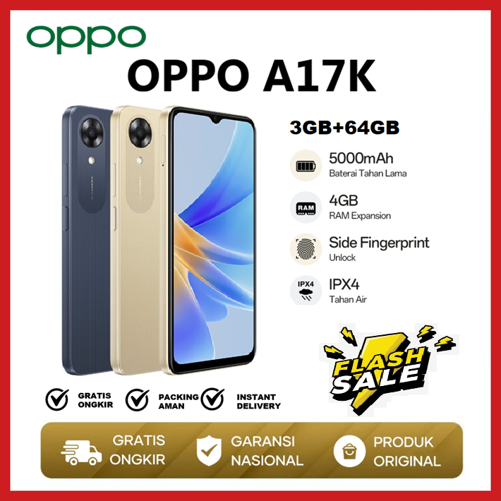 HP OPPO A17K 3GB/64GB GARANSI RESMI MT6765 Helio G35 Ukuran 6,56 inci