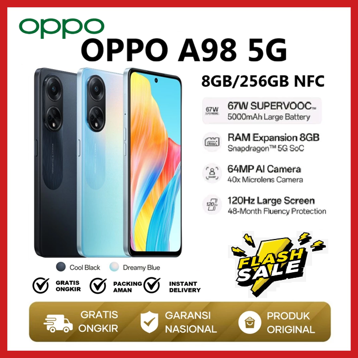 HP OPPO A98 5G 8GB/256GB GARANSI RESMI NFC Snapdragon™ 695 Ukuran 6,72"