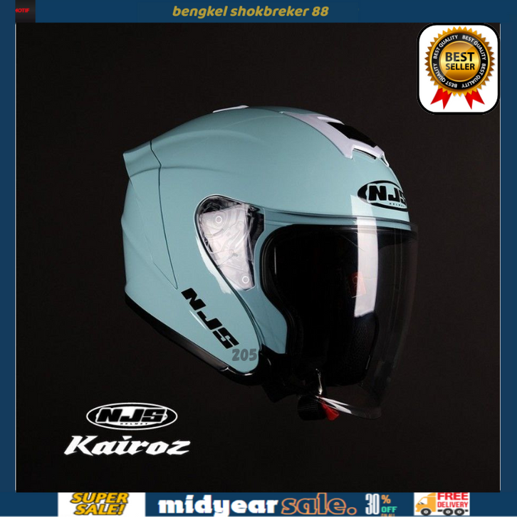 PROMO DISKON TERMURAH HELM VIRAL NJS KAIROZ ORIGINAL WHITE BLACK EASY GREEN HELM HALFFACE NON FULLFACE HELMET TERLARIS