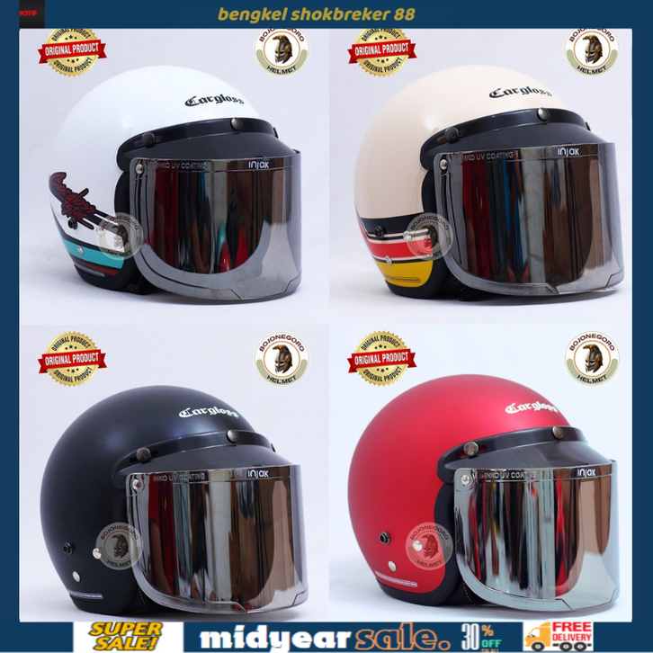 HELM CARGLOSS FREE VISOR DATAR ORIGINAL RETRO CARGLOSS ORIGINAL / HELM HALF FACE/ CARGLOSS/ CARGLOSS RETRO KUALITAS