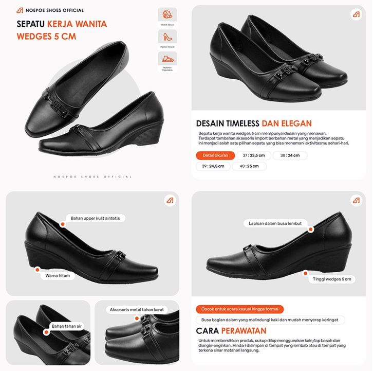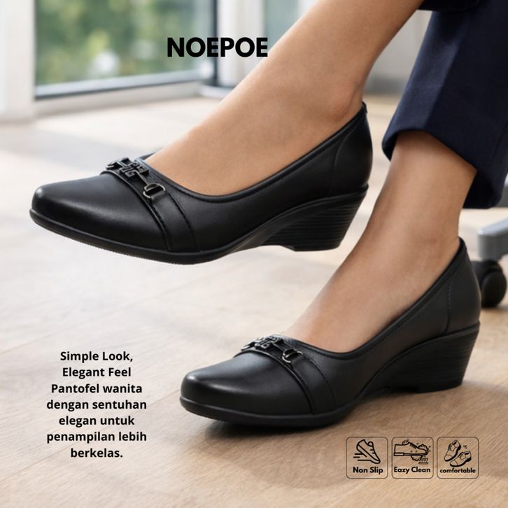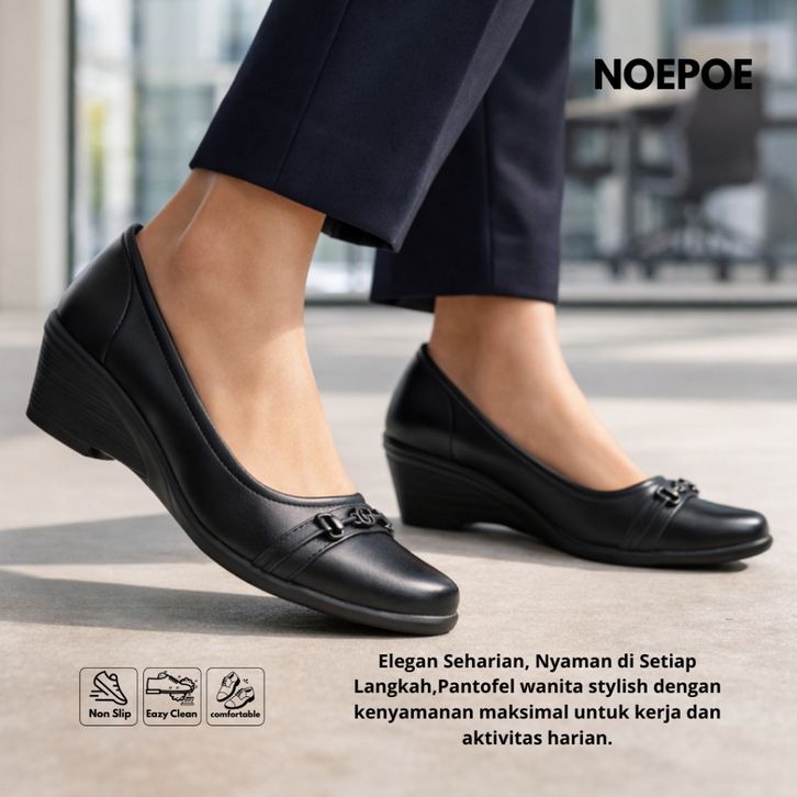 Everflow Sepatu Wedges Wanita Sepatu Formal Wanita Sepatu Pantofel Wanita Tinggi 4Cm Sepatu Wanita Hitam Kerja Kantor