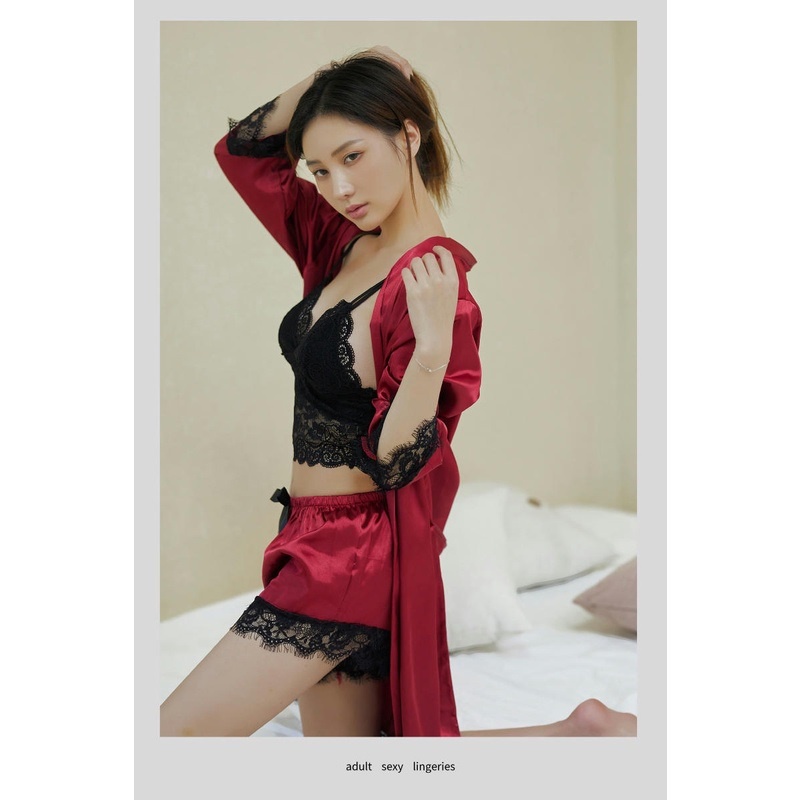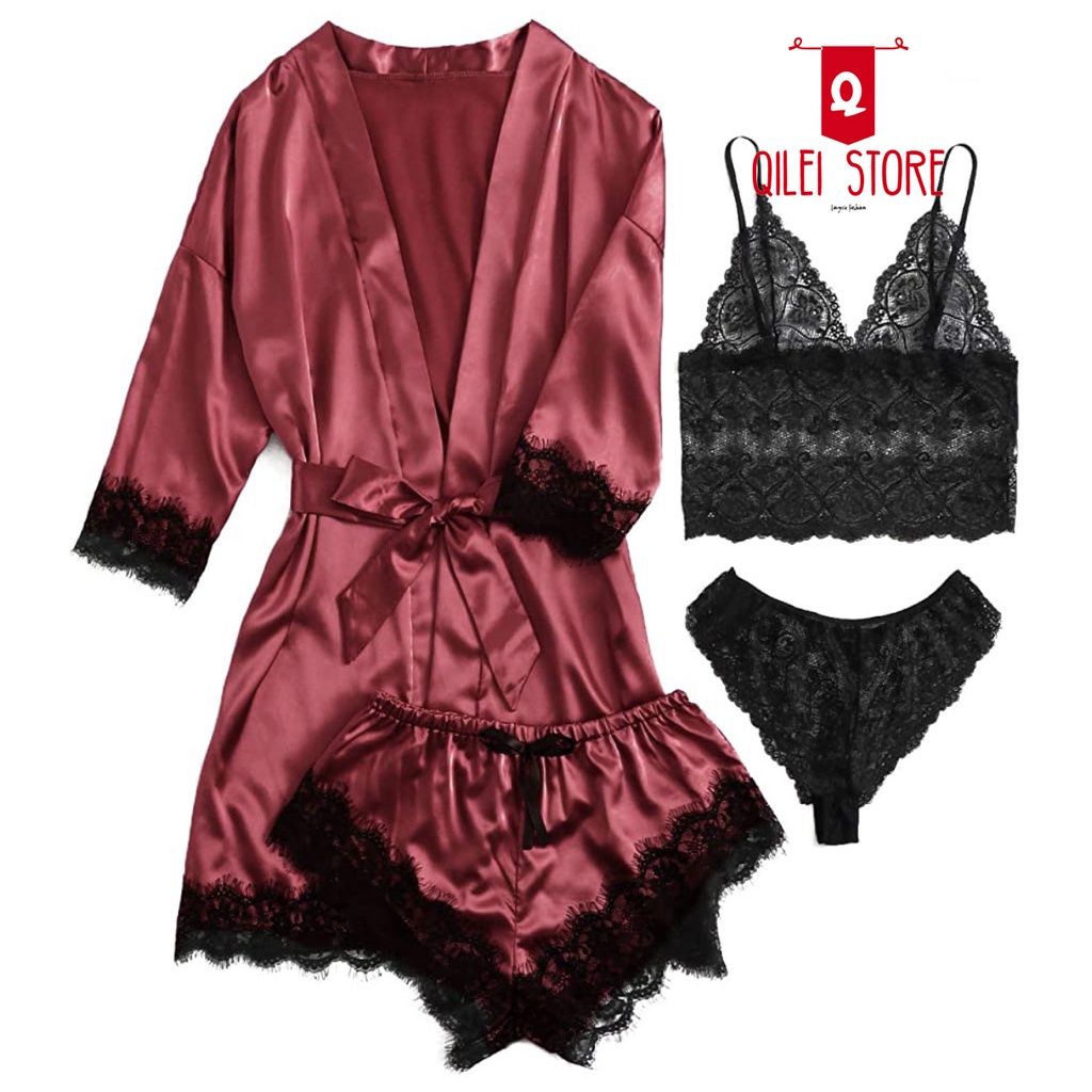 Pakaian Tidur Lingerie Sexy Kimono Silk Set Piyama Satin Baju Tidur Wanita Premium