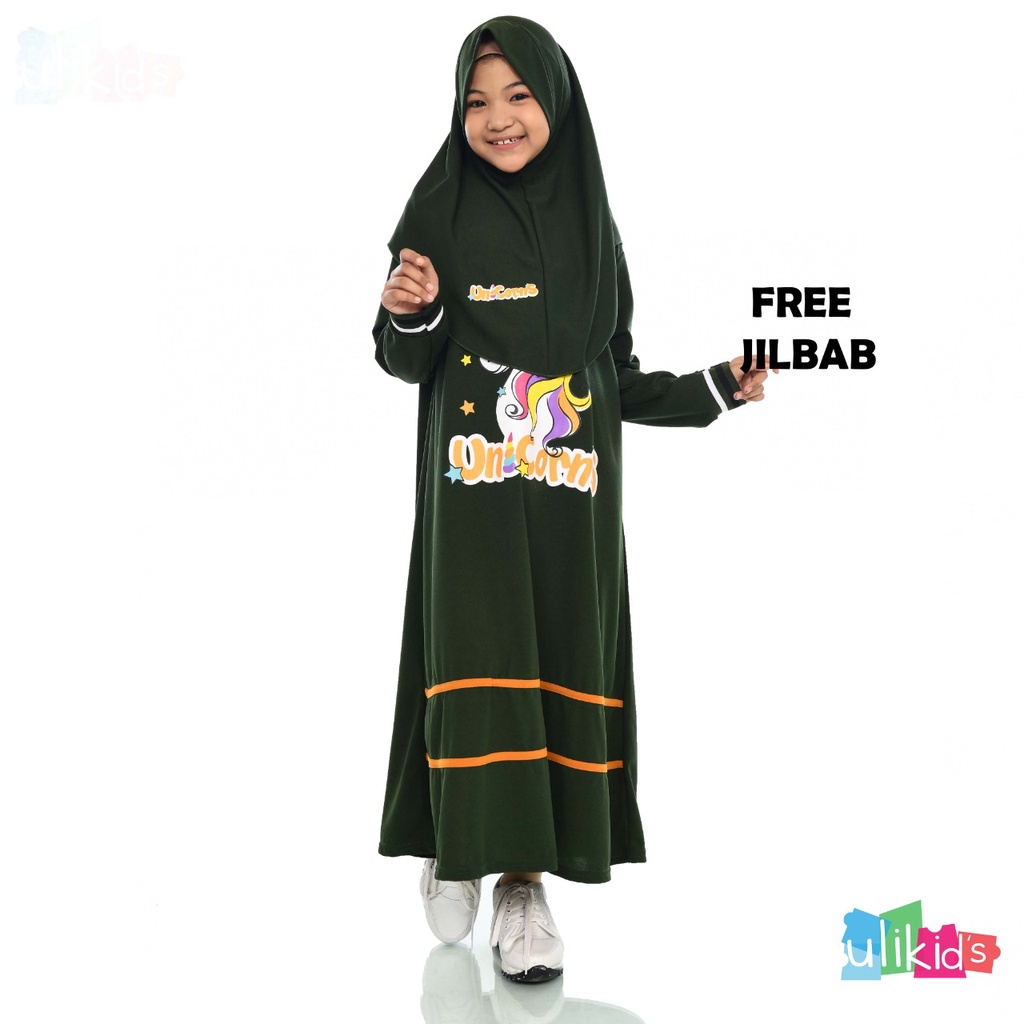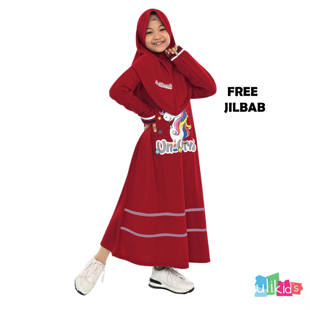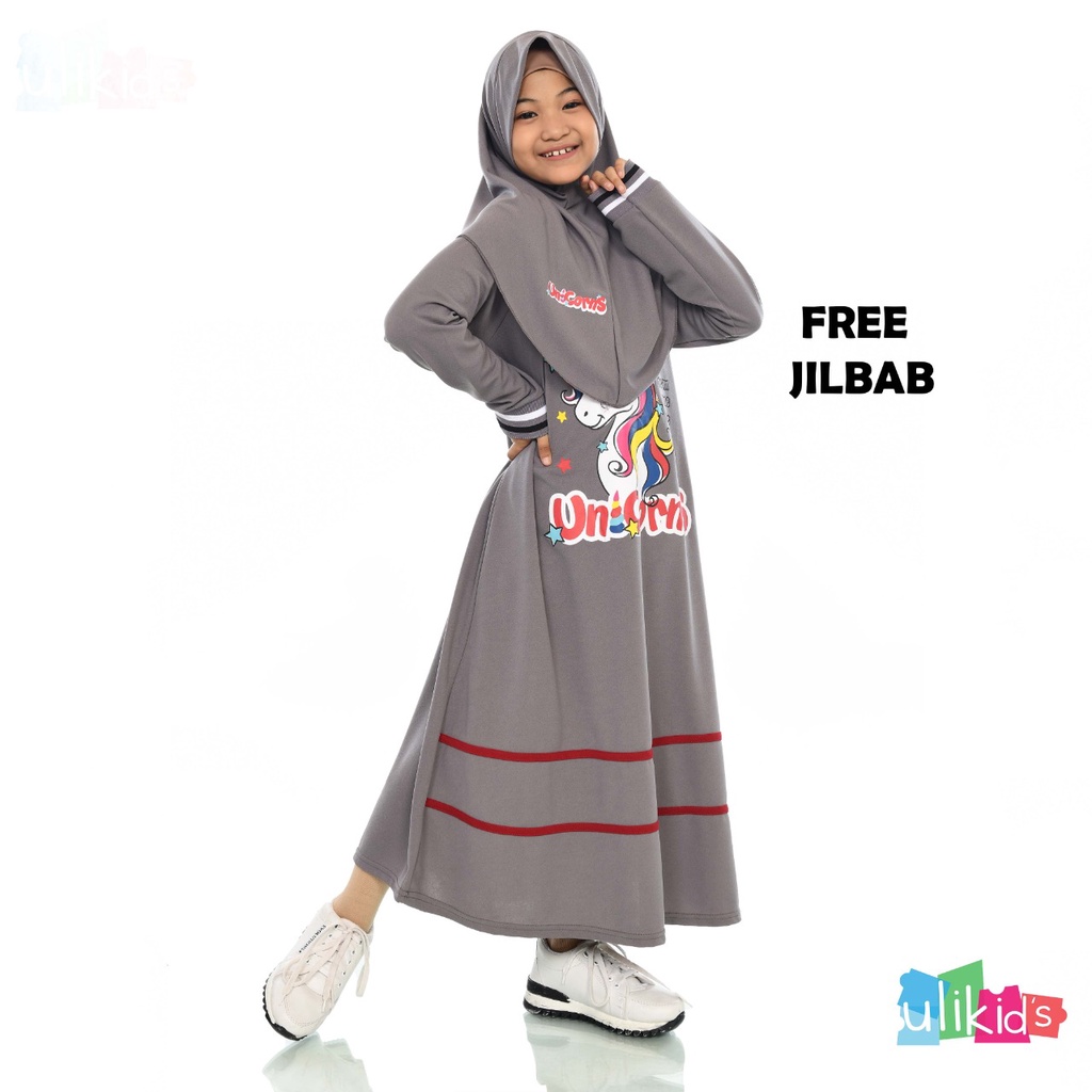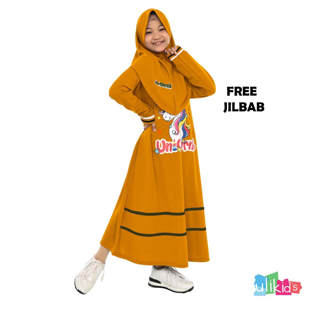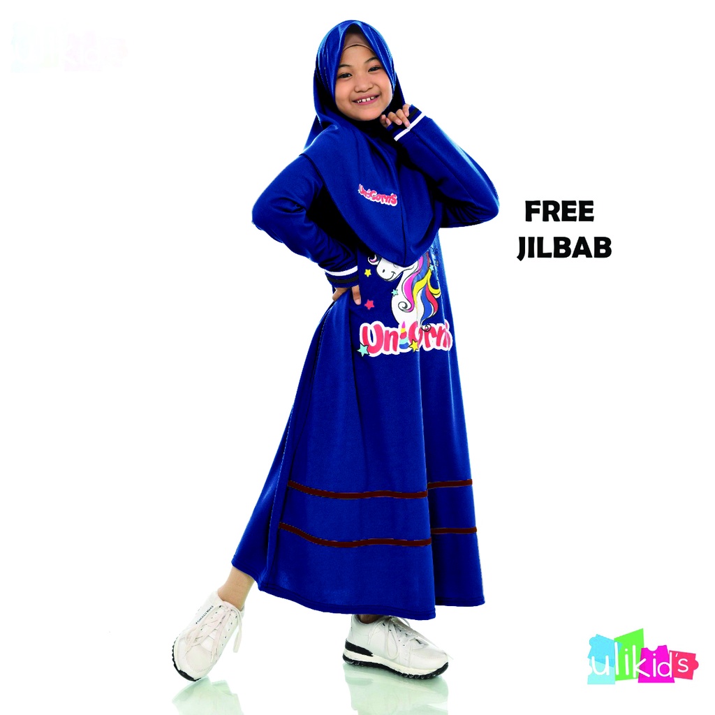 Gamis Anak Perempuan Set Hijab Motif Unicorn Bahan Voxi Free Jilbab