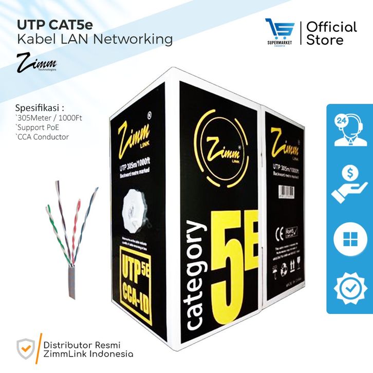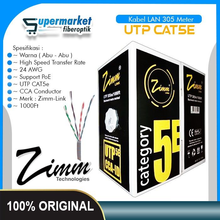 termurah Kabel LAN FTP CAT 5E Outdoor ZIMM LINK Eceran Meteran Suport POE Single Jacket Ethernet Gigabit CCA ID
