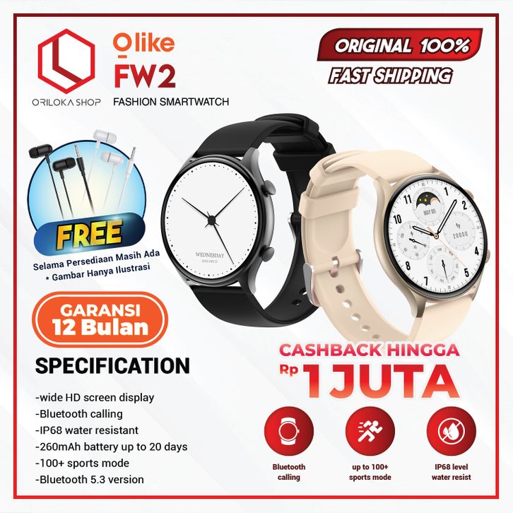Olike FW2 Smartwtch Bluetooth Call | Garansi Resmi | Jam Tangan Pintar Wanita / Pria