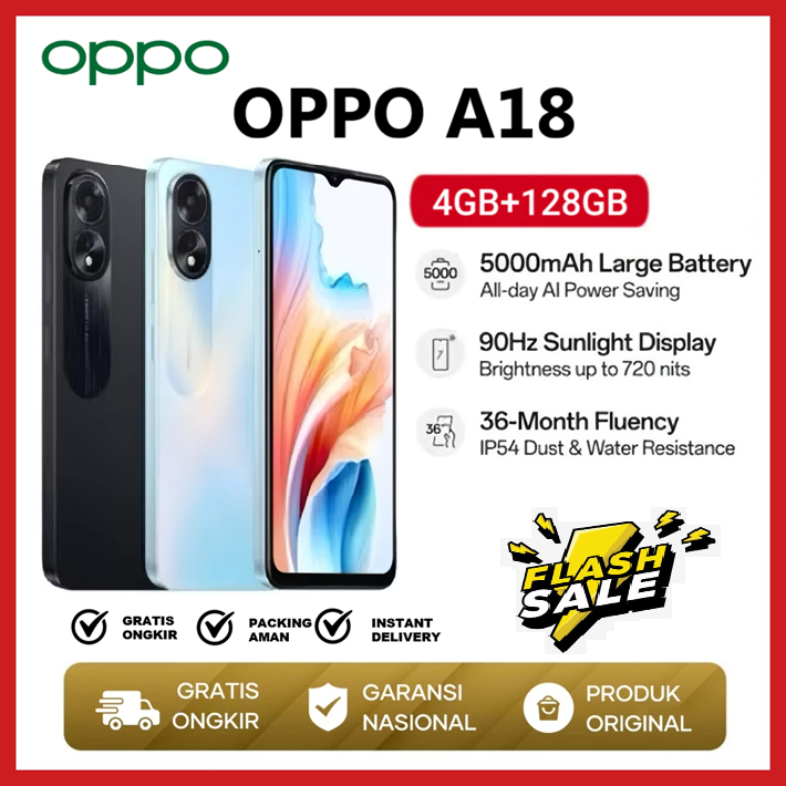 HP OPPO A18 4GB+128GB GARANSI RESMI MediaTek Helio G85 Ukuran: 6,56"