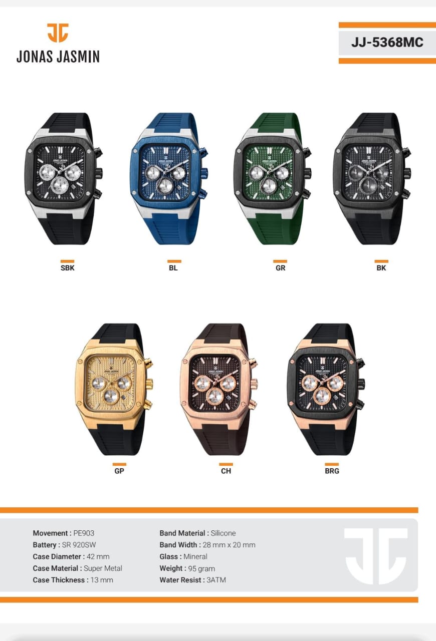 Jam Tangan Pria Fashion Jonas Jasmin JJ5368L Original Tanggal Dan Chrono Aktif Garansi 12 Bulan