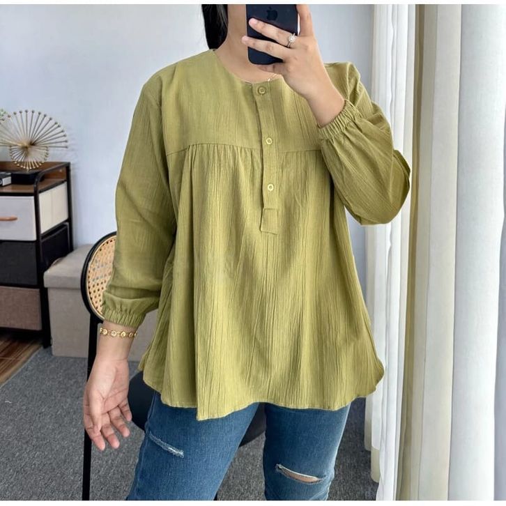 BLOUSE KOREA KEMEJA WANITA BLOUSE CRINKEL ATASAN WANITA KEKINIAN BAJU CEWE BAJU WANITA ATASAN CEWEK BAJU KEKINIAN MURAH
