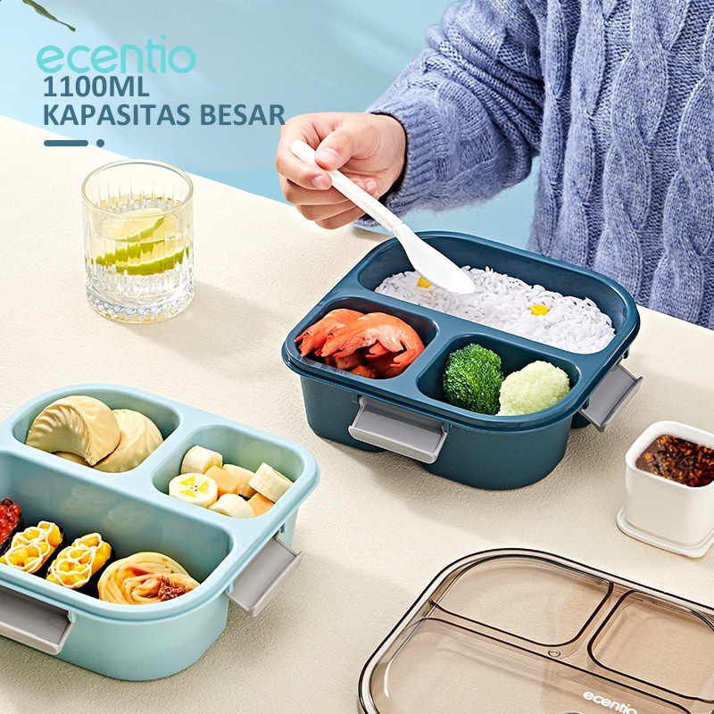 KOTAK MAKAN ANTI TUMPAH 3 GRID LUNCH BOX BPA FREE ECENTIO BERKUALITAS FURNITURE SHOP