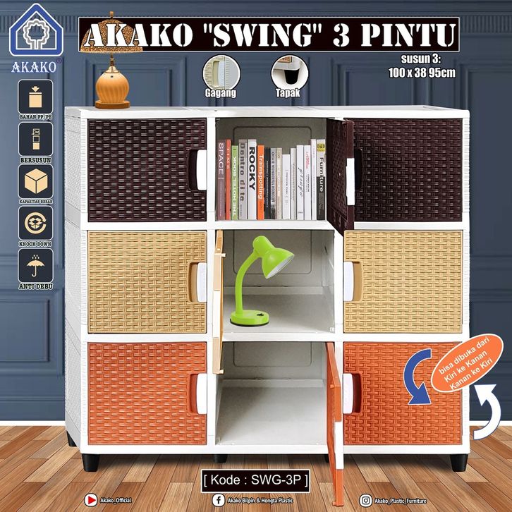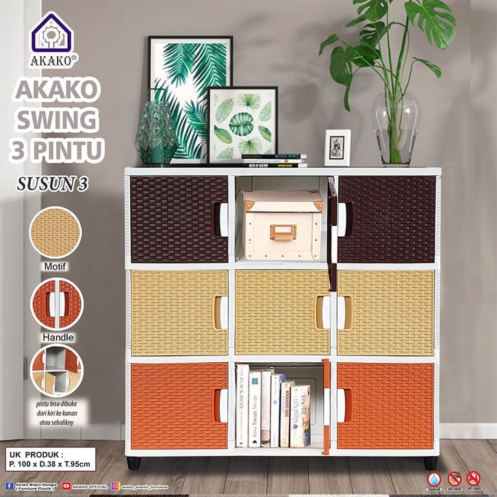 LEMARI PLASTIK AKAKO SWING SUSUN 3 FANCY LEMARI 3 PINTU SERBAGUNA