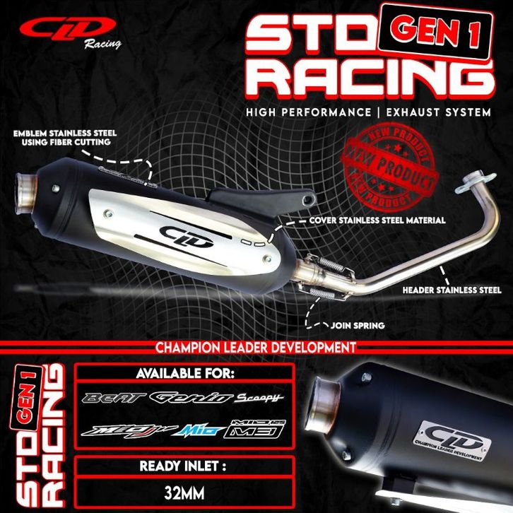 Knalpot CLD Standar Racing Gen 1 Mio / Mio M3 / Beat / Scoopy / Genio / Mio J / Beat Deluxe / Fazzio / Filano / Vario 11