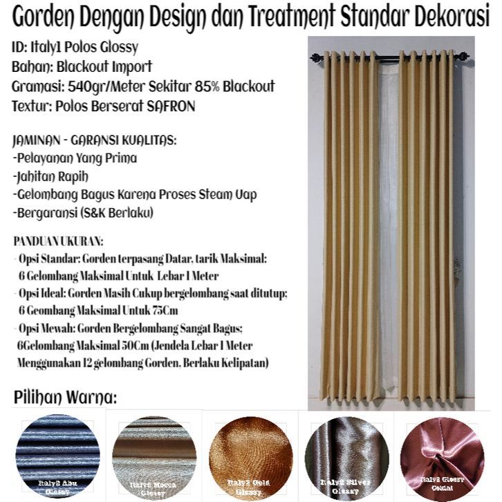 GARANSI KEPUASAN: Gorden Jendela Blackout Polos Glossy Lebar 6 7 8 9 10 12 15 Gelombang Tinggi 250Cm