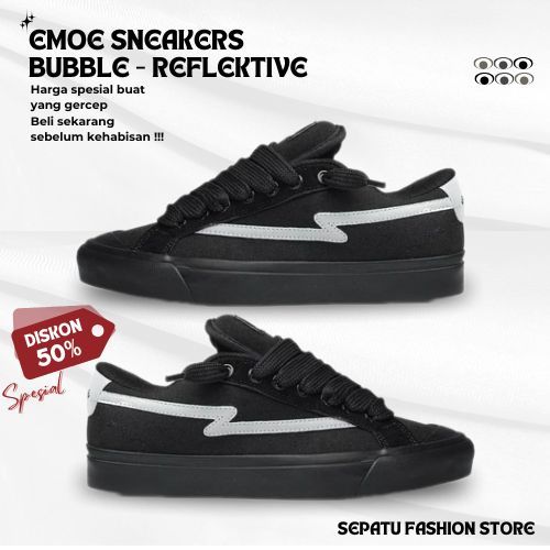 EMOE REFLEKTIVE Sneakers Pria Wanita Sepatu Kasual Hitam Abu Elegan Shoes Karet Model Kekinian