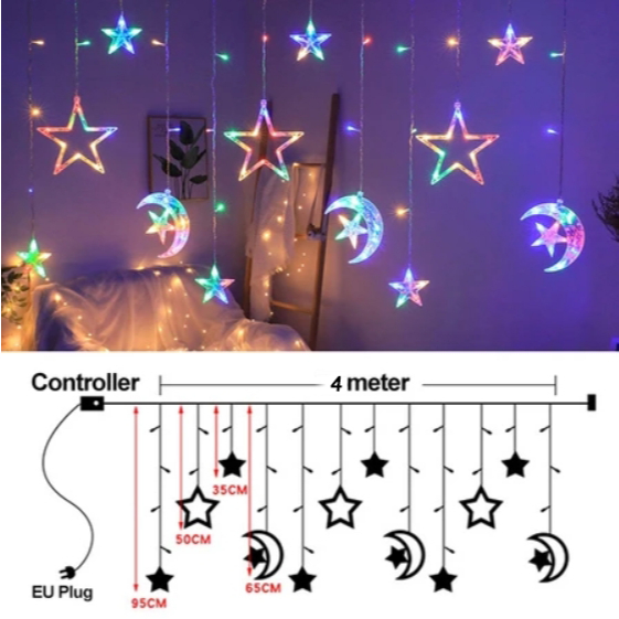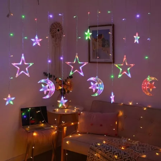 Lampu Hias 17 Agustusan Ramadhan Christmas LED Bintang Bulan Tirai Dekorasi Outdoor Tahan Air KelapKelip Aestetic Murah