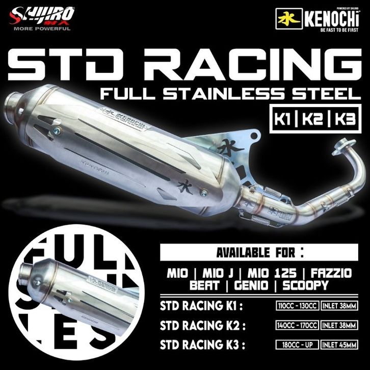 Knalpot Standar Racing Kenochi Stainless Mio Karbu / Mio J / Mio M3 / Beat Karbu / Beat FI / Genio / Filano / Xeon RC /