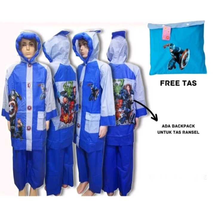 Jas Hujan Anak Stelan Backpack Karakter Untuk 5-13 Tahun